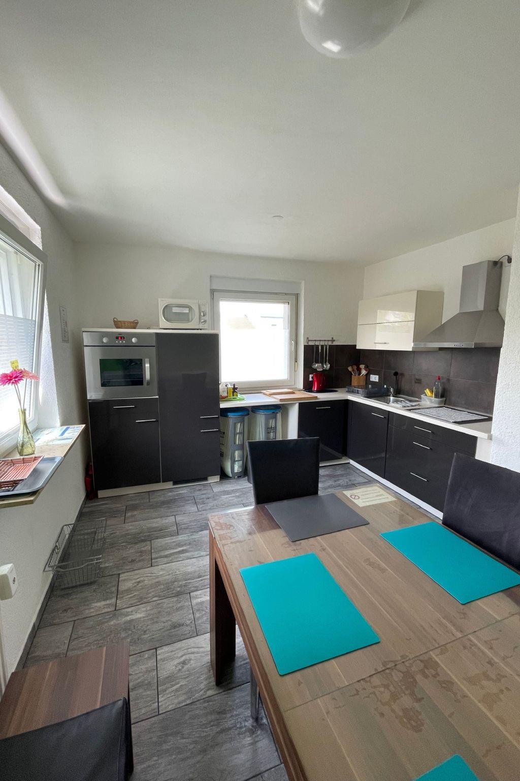 2 bedrooms - flexible & cosy. The "Sunflower" room faces Ulmerstrasse, is bright and cosy and has 3 single beds. The "Himmelblau" room faces the garden and also has 3 single beds - perfect for families, friends or colleagues travelling together. Fully equipped kitchen & living comfort: Modern kitchen with dishwasher, ceramic hob, fridge, microwave, kettle, filter coffee machine and plenty of crockery. Large dining area with seating for 6. Smart TV in the "Sunflower" and "Sky blue" bedrooms. Free WLAN. Modern bathroom with shower. Separate WC with washbasin. Washing machine with tumble dryer function
