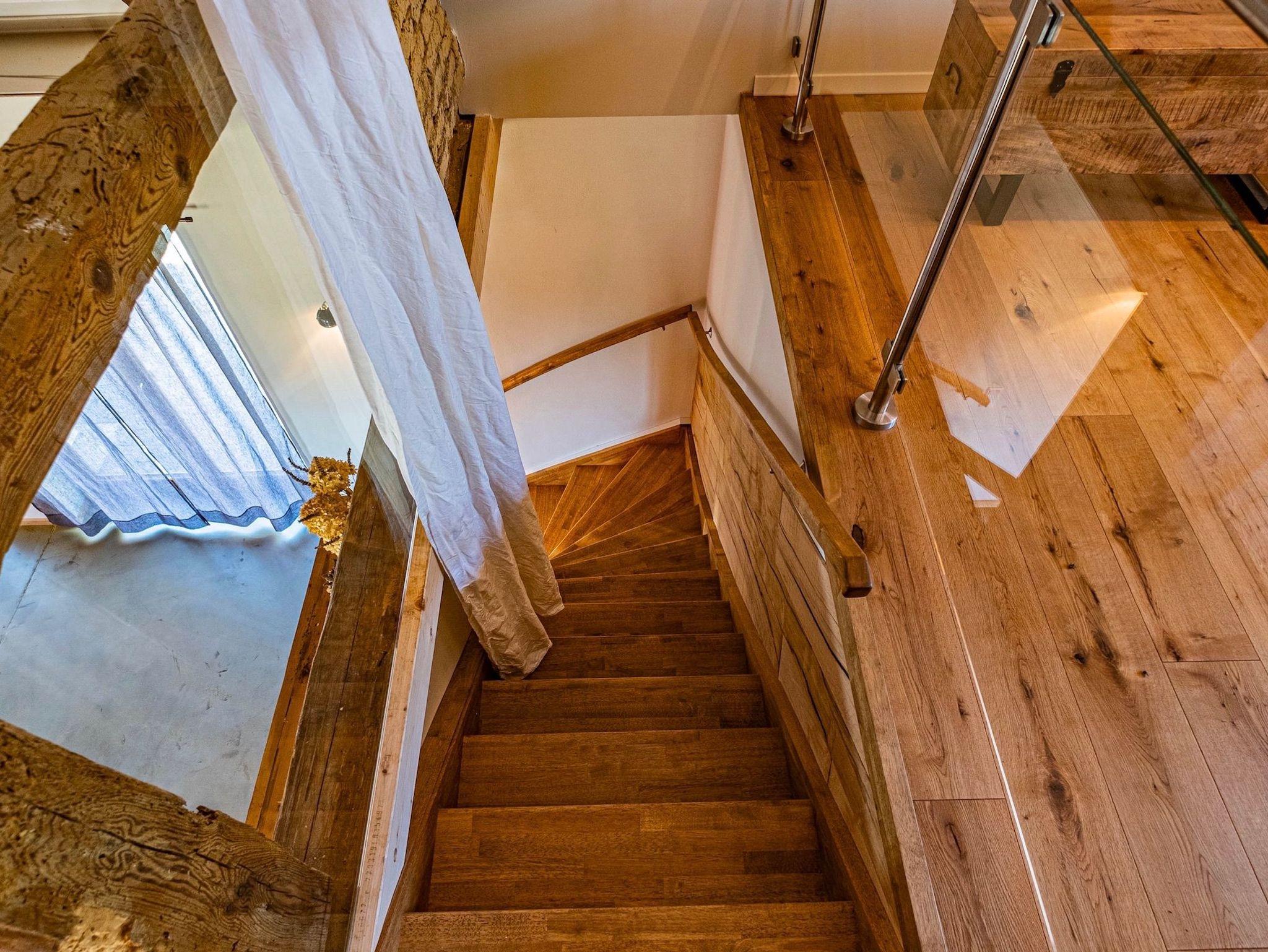 In einem Flügel des Dreiseitenhofes befinden sich ein großer Raum mit offenem Dachstuhl, eine voll ausgestattete Küche, ein lichtdurchfluteter Wintergarten und offene Galerie. Hier kann man wunderbar gemeinsame Zeit verbringen.