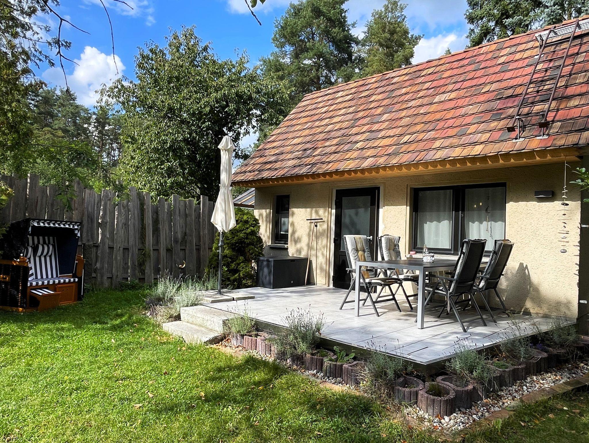 Im Außenbereich lädt eine große Terrasse mit bequemen Sitzmöbeln und Grill zu geselligen Abenden ein. Umgeben von Ruhe und Natur können Sie hier entspannen, den Vögeln lauschen oder einfach die Seele baumeln lassen.