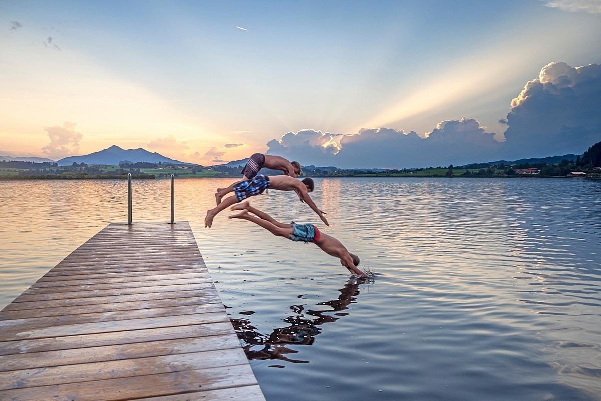 Freizeitmöglichkeiten: Das Angebot in Lechbruck am See reicht vom Angeln, Baden über Biken, Volleyball, Floßfahrten, Reiten, Skifahren, Rodeln, Schlittschuhfahren, Wandern bis hin zum Golfen auf dem 18-Loch-Golfplatz auf der Gsteig mit einzigartigem Panorama.