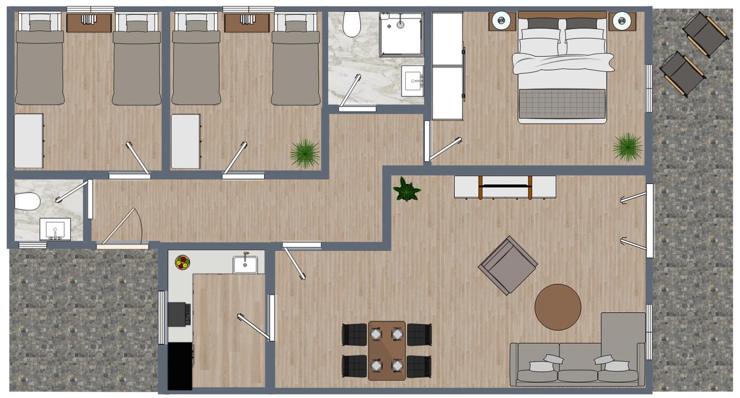 Unser großes Ferienhaus mit ca. 86 m² zeichnet sich durch eine besonders schöne und dabei sehr ruhige Lage im Feriendorf aus.