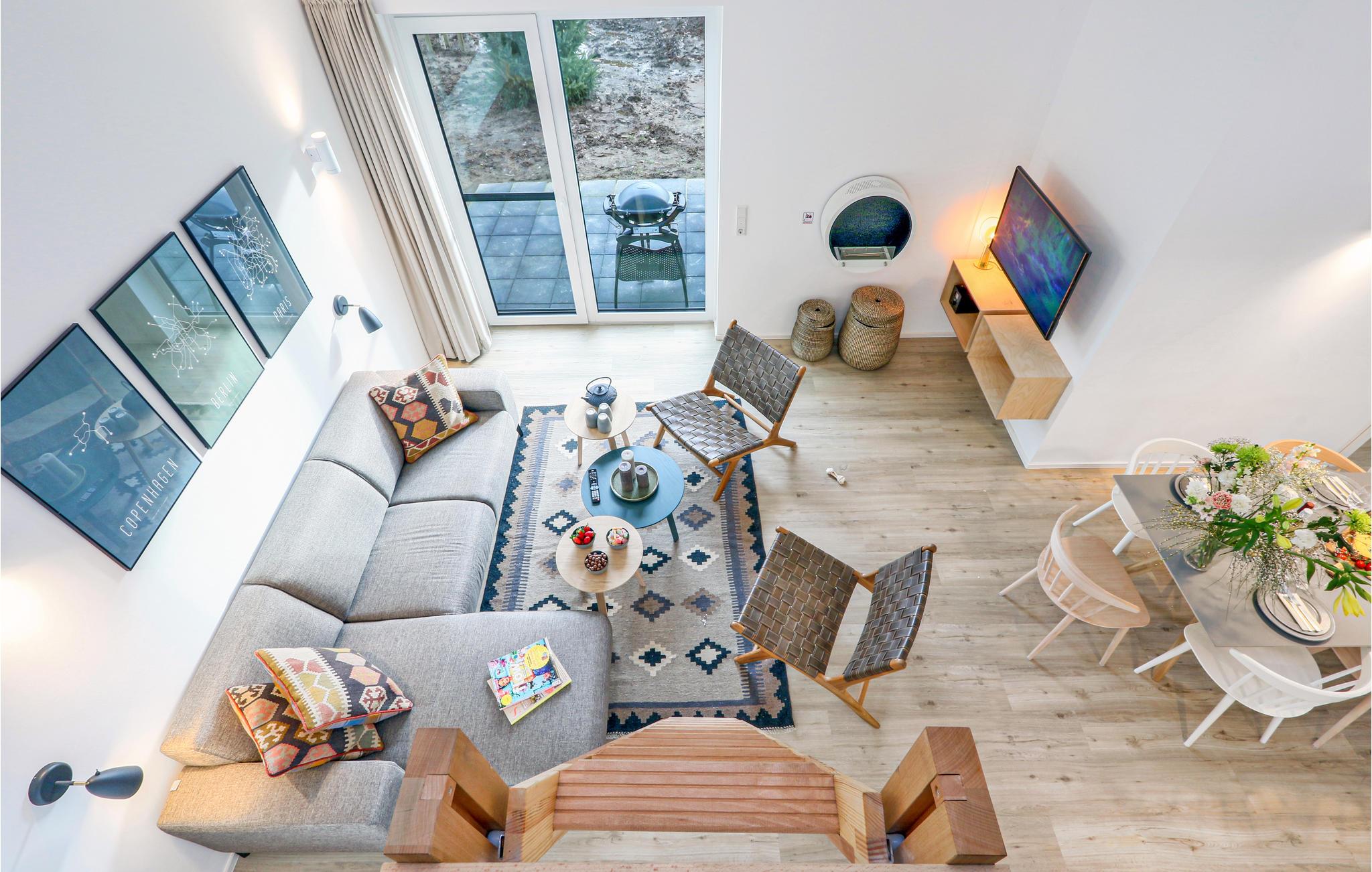 Välkommen till ditt semesterhus, som erbjuder dig som en familj med barn eller som en grupp vänner en mysig, hemtrevlig atmosfär med skandinavisk designinredning. På de nästan 100 kvadratmetrarna finns det alltid tillräckligt med utrymme för upp till 8 personer. Två terrasser för att sitta och äta i solen, biopeisen och din egen bastu lämnar inget övrigt att önska.