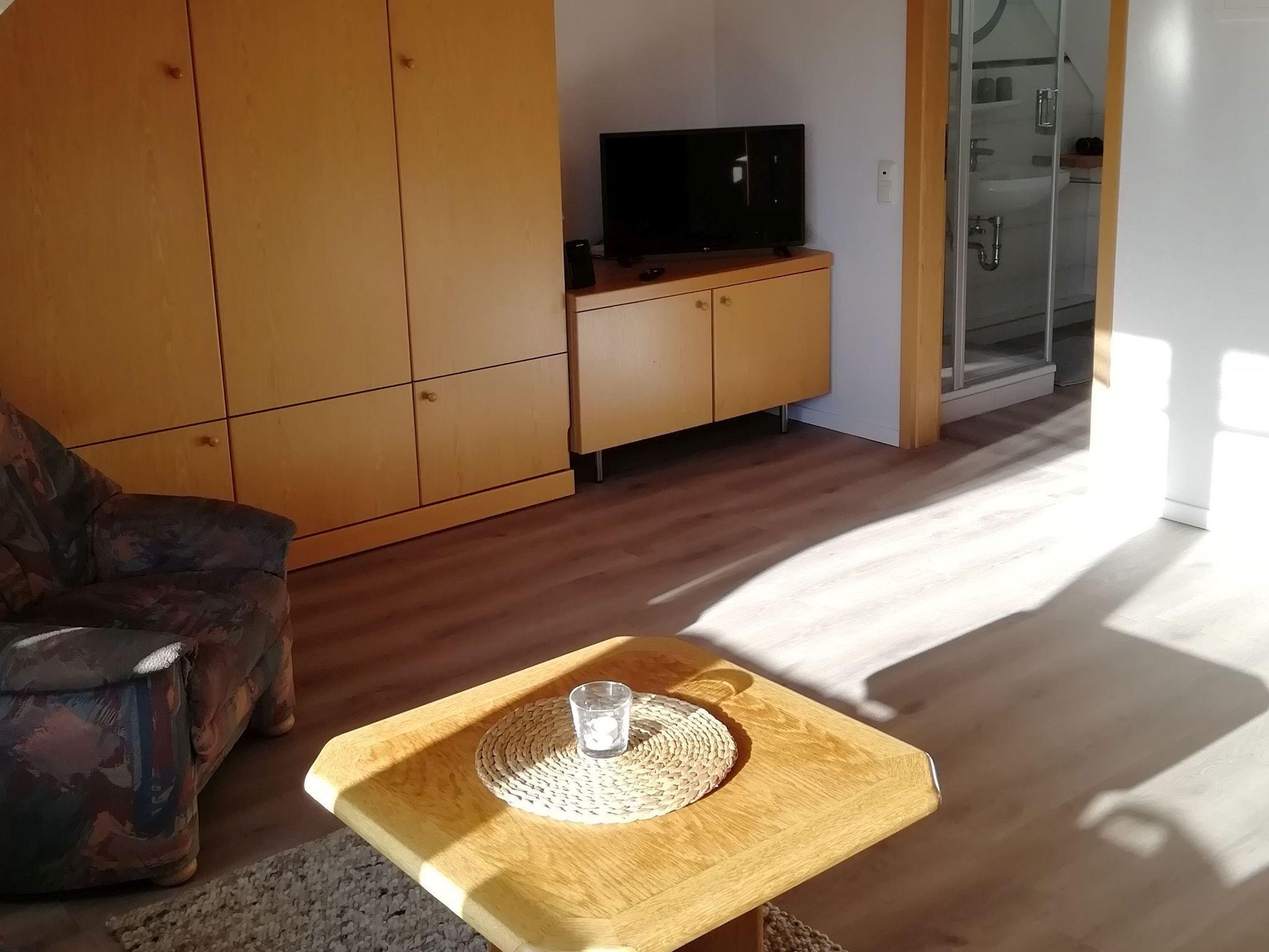 Die Ferienwohnung Gartenblick ist für 2 Personen in ruhiger Wohnlage auf Etage mit großem Süd-West Balkon zur Gartenseite und Gartenblick geeignet. Ihre Ferienwohnung ist 45 qm, gemütlich eingerichtet und mit Designer Planken belegt.