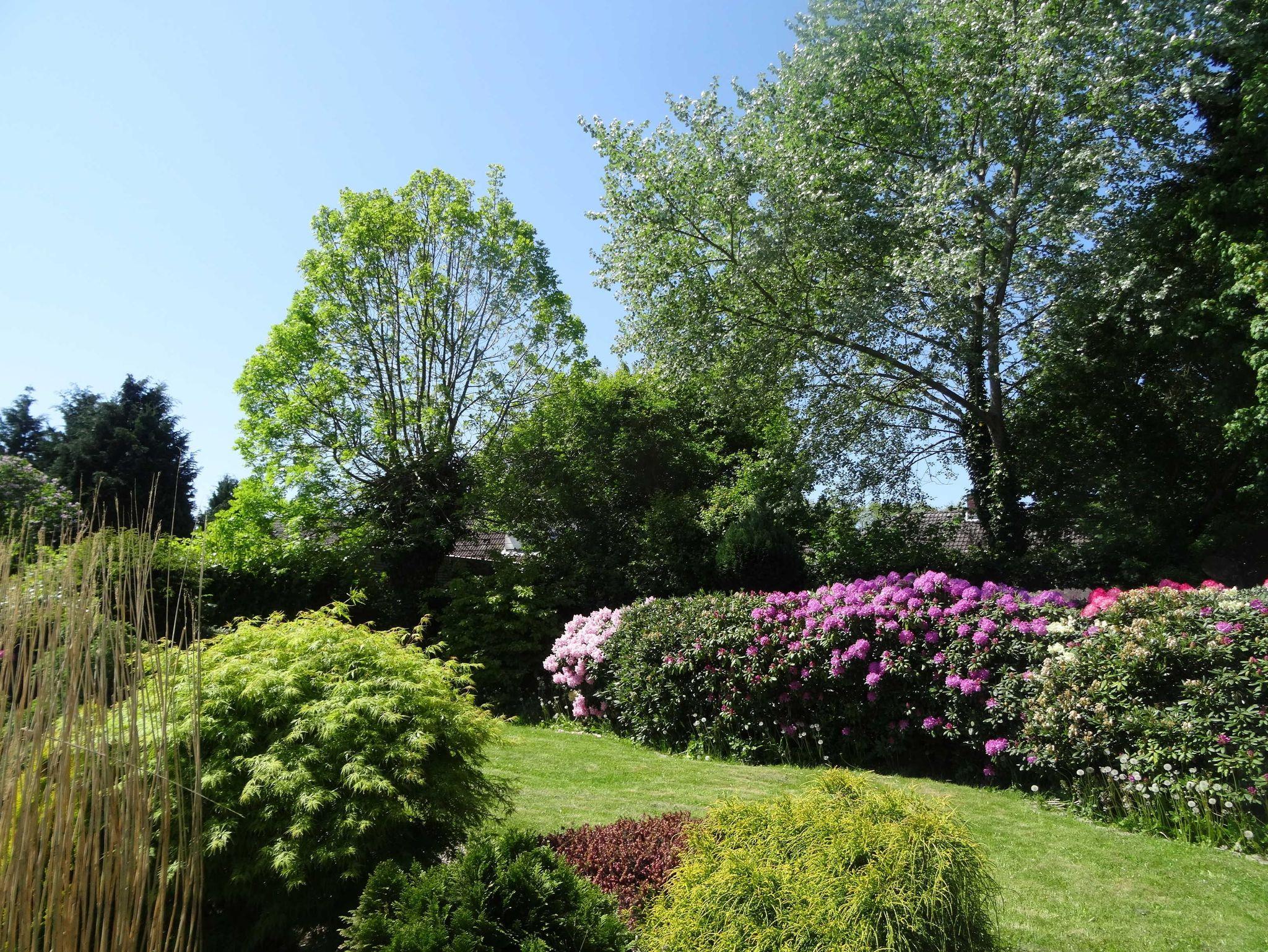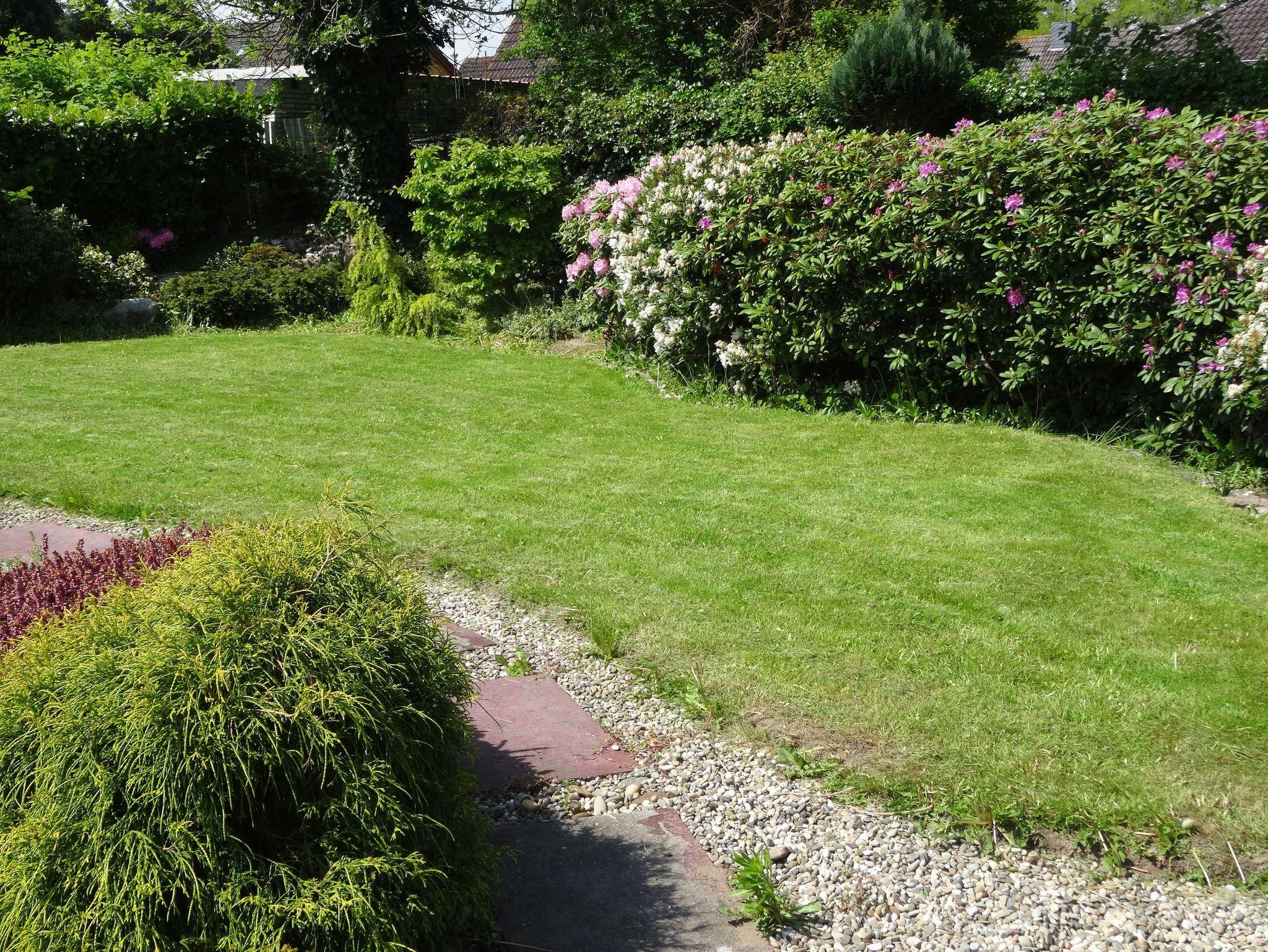 Sie erholen sich auf einem mit Büschen und kleinen Bäumen umsäumten wunderschönem Grundstück. Der liebevoll angelegte Garten bietet viel Platz zum Entspannen.