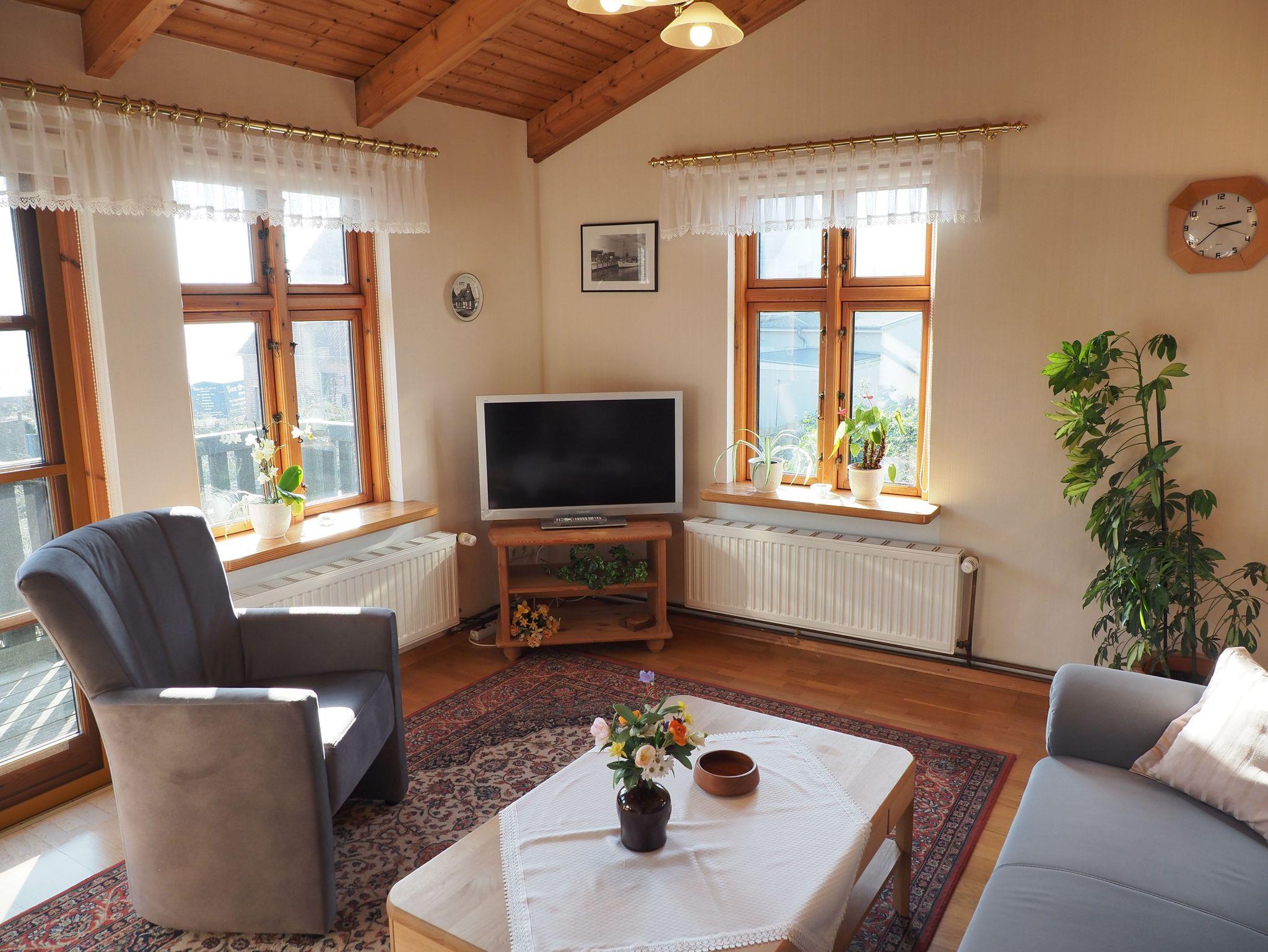 • Wohnbereich mit Sat-TV und direktem Zugang zum Balkon (15qm)