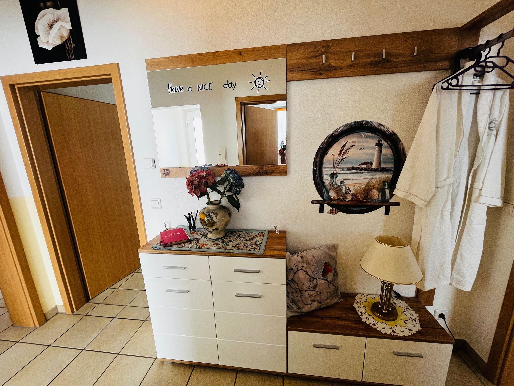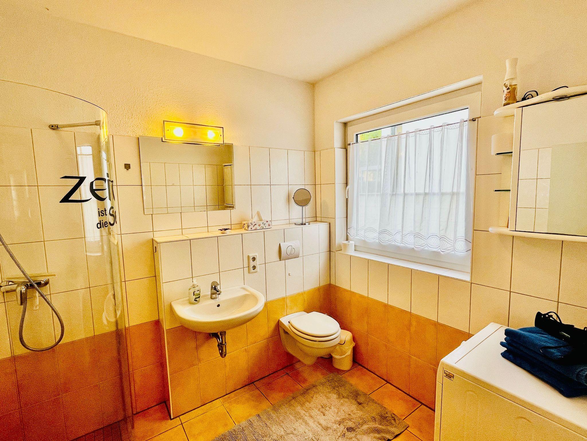 Das Schlafzimmer ist mit einem bequemen Doppelbett ausgestattet, das auch als zwei Einzelbetten gestellt werden kann. Eine Doppelbettcouch (1,50 x 2,00 m, vergrößerbar auf 1,80 x 2,00 m) im Wohnbereich sorgt für zusätzliche Schlafmöglichkeiten. Das moderne Bad ist mit einer ebenerdigen Dusche ausgestattet und bietet altersgerechte, aber moderne Sanitäreinrichtungen. Alle Räume sind mit Fußbodenheizung und Fliesenboden ausgestattet, um Ihnen auch in den kälteren Monaten maximalen Komfort zu bieten. Rolläden an allen Fenstern sorgen für absolute Ruhe und Dunkelheit, wenn gewünscht.