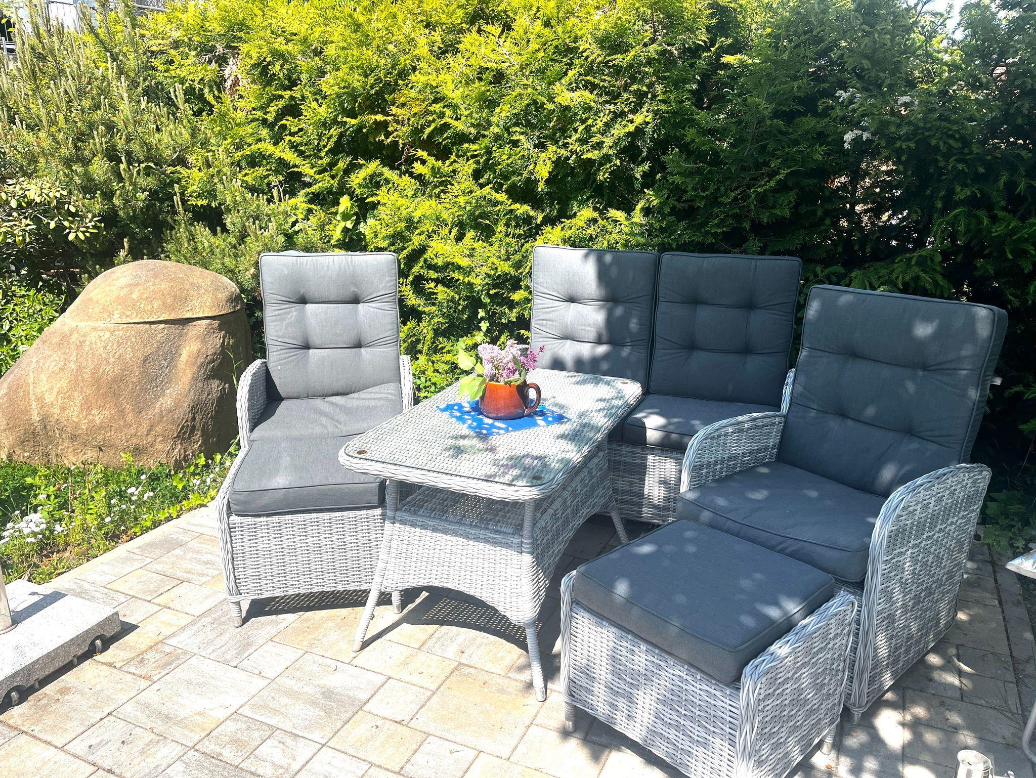 Sittgrupp i trädgården