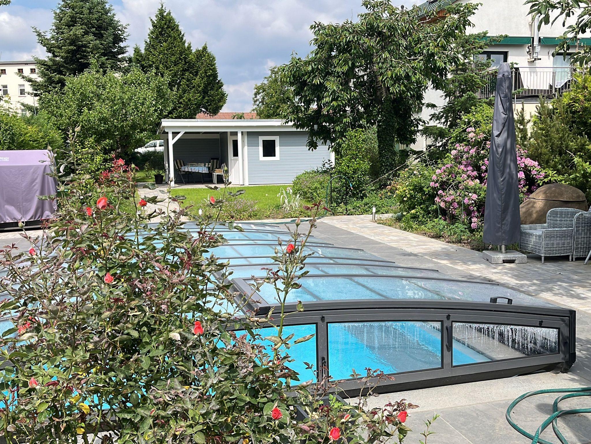 Die Ferienwohnung liegt in einer idyllischen, grünen Umgebung, umgeben von ca. 1400 m² Grundstück, und bietet Ihnen eine perfekte Mischung aus Ruhe und Stadtleben. In nur wenigen Gehminuten erreichen Sie den Elberadweg, den Stadtpark und die Elbe ideal für Spaziergänge, Radtouren oder einfach zum Entspannen in der Natur. Zudem sind Sie nur 4 Straßenbahnhaltestellen (Linie 4) von der Innenstadt entfernt, wo Sie zahlreiche Sehenswürdigkeiten, Restaurants und Einkaufsmöglichkeiten erwarten.