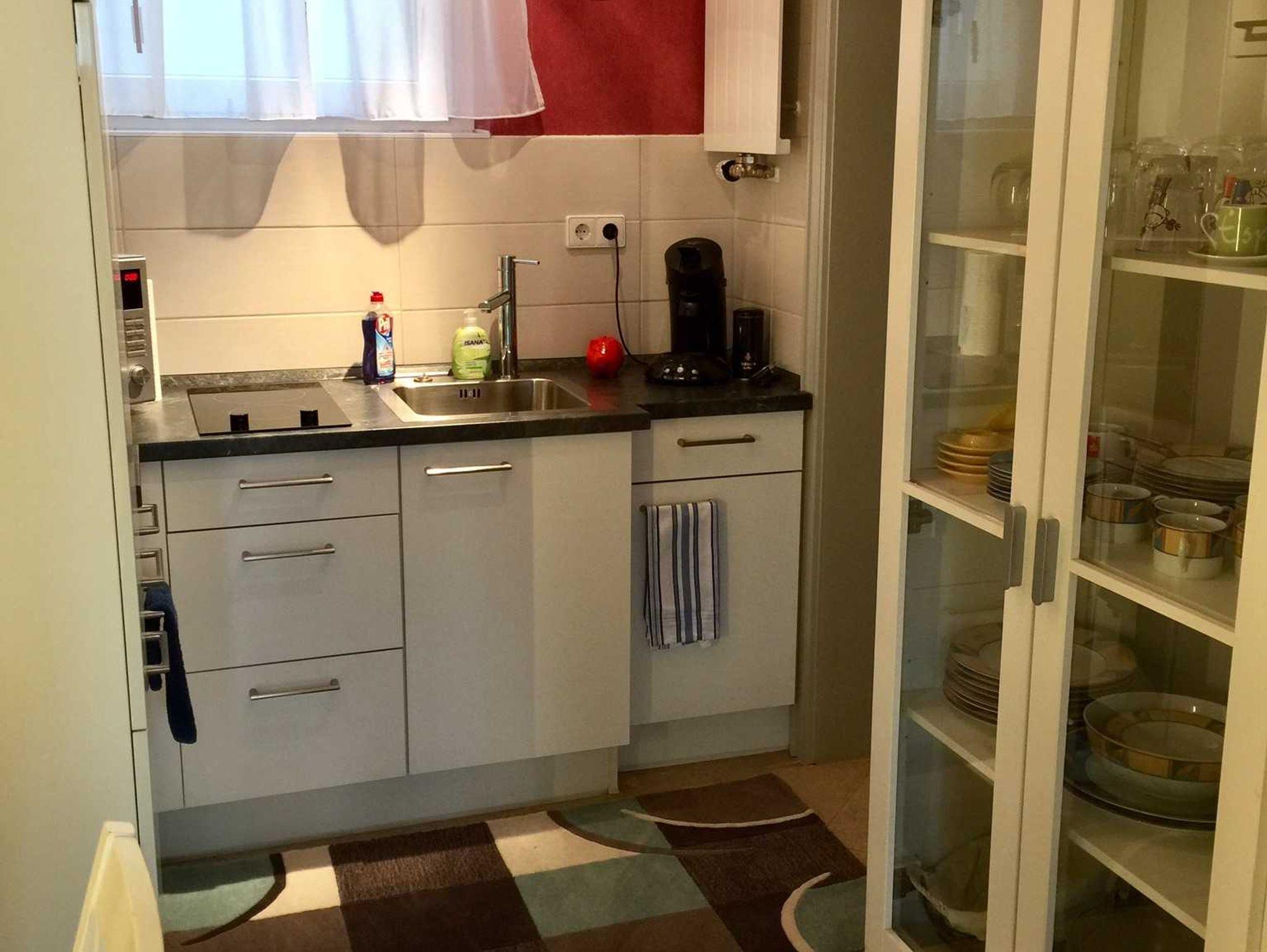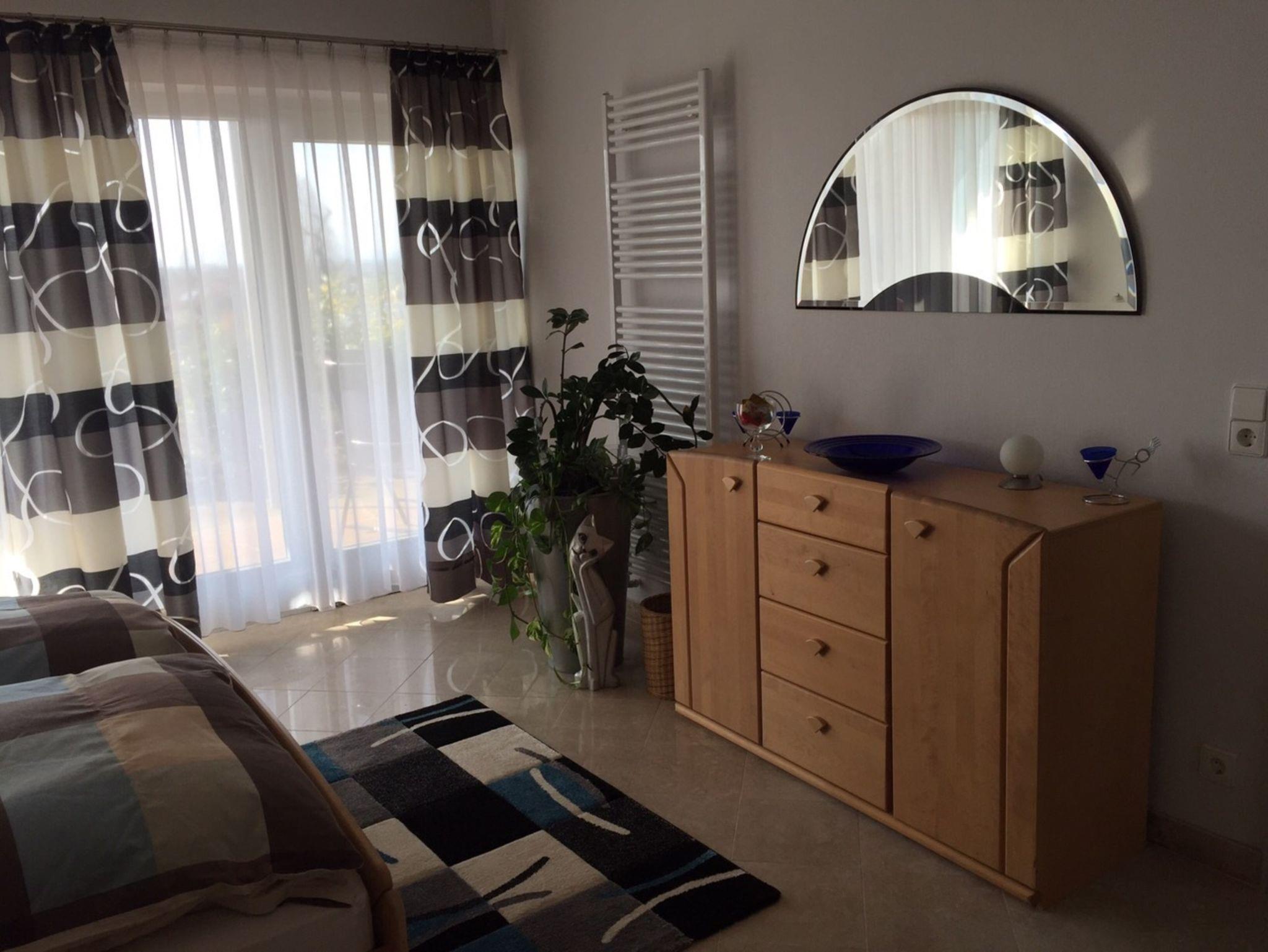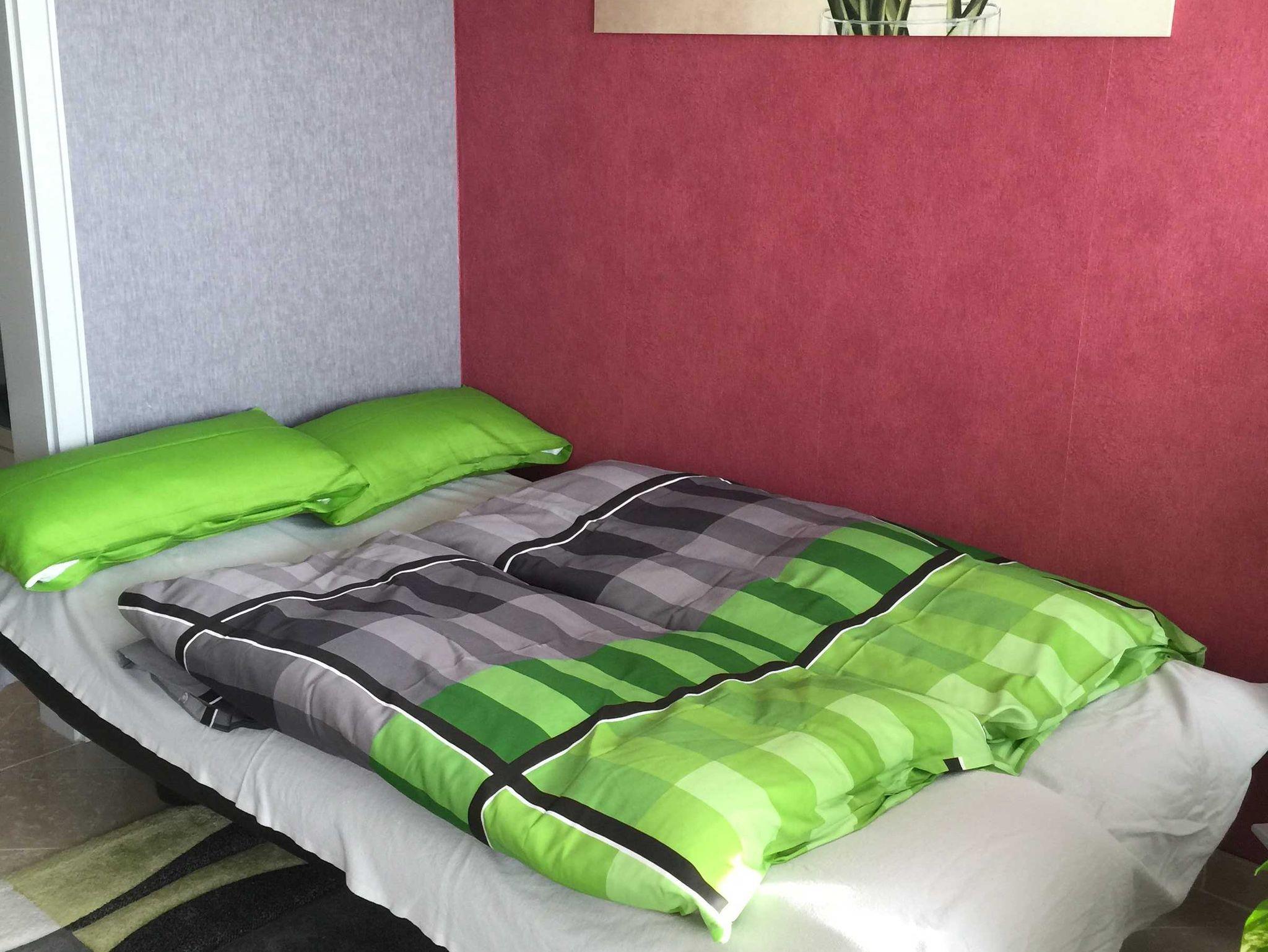 Nichtraucherwohnung, Badezimmer, Küche, Schlafzimmer mit Doppelbett und bei Bedarf Zustellbett. Wohnzimmer mit Schlafcouch für 2 Personen, Zugang auf die große Terrasse von Schlaf- und Wohnzimmer.