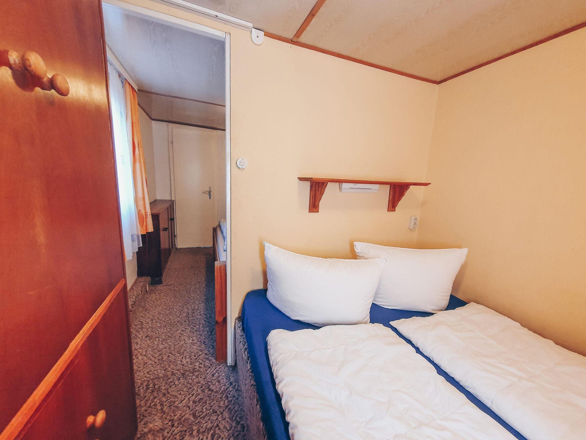 Der Bungalow 321 bietet eine einzigartige Unterkunftserfahrung für Besucher, die nach Ruhe und Entspannung suchen. Der freistehende Bau ist ideal gelegen, da er sich in unmittelbarer Nähe des Haupteingangs befindet. Unser Bungalow bietet Euch eine komfortable Unterkunft, mit vier Übernachtungsmöglichkeiten und ist somit bestens für Familien mit zwei Kindern oder vier erwachsene Personen geeignet. Der Schlafbereich verfügt über zwei Schlafzimmer, die jeweils mit einem Doppelbett ausgestattet sind. Der Wohnbereich besticht durch sein geräumiges Sofa, welches eine gemütliche Atmosphäre schafft. Darüber hinaus bietet es Schlafplätze für zwei weitere Personen. Die kleine Küche ist mit allen Standard-Geräten ausgestattet, wie Herd, Ofen, Kaffeemaschine, Toaster, Wasserkocher und Kühlschrank und lädt zu gemütlichen Kochabenden ein. Das moderne Bad ist mit einer Dusche und einem WC ausgestattet. Ihr könnt das Auto bequem auf dem Parkplatz direkt vor dem Bungalow abstellen.