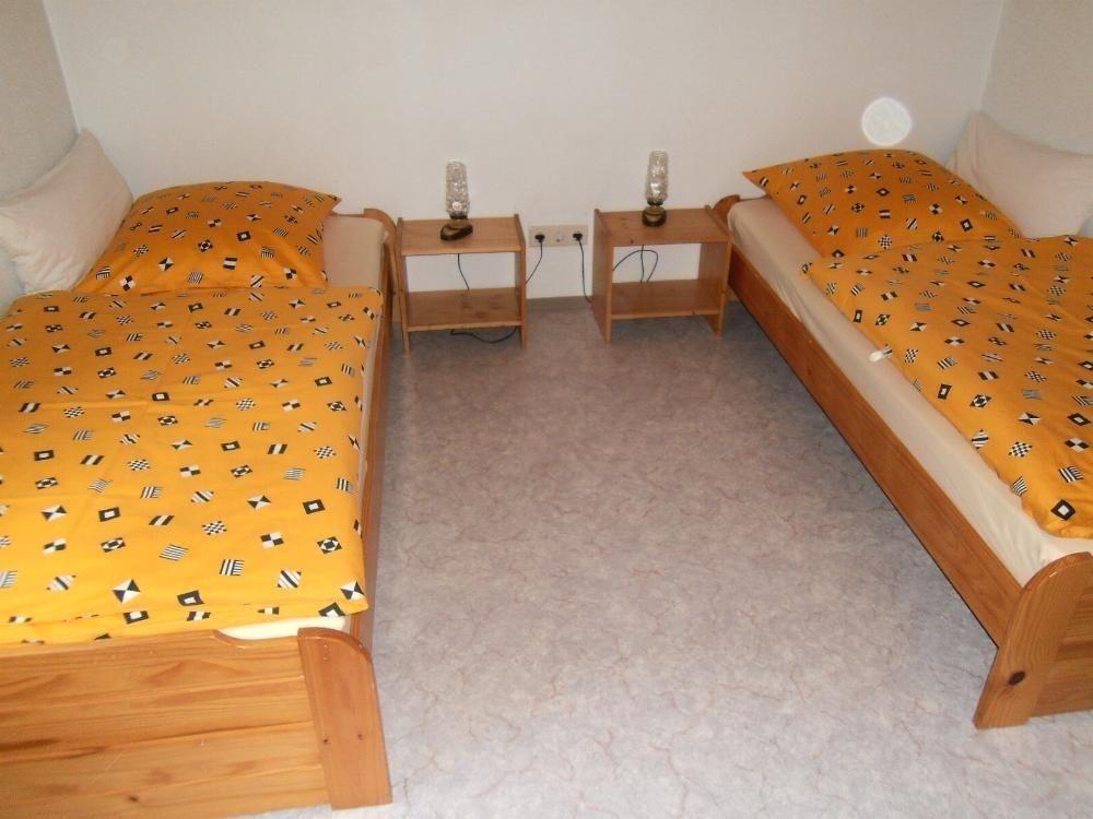 Des weiteren gehören WLAN, Sat-TV, DVD-Player und Radio mit CD-Player zur Einrichtung der Ferienwohnung. Im Obergeschoss stehen ihnen 2 Schlafzimmer zur Verfügung, eines mit Doppelbett (180x200) und Kinderbett, eines mit 3 Einzelbetten (90x200). Bettwäsche, Hand- und Badetücher werden gestellt. Auf Wunsch stellen wir ihnen gerne Kinderbett, Hochstuhl, Türschutzgitter, Baby-Badewanne mit Wickelauflage natürlich kostenlos zur Verfügung.