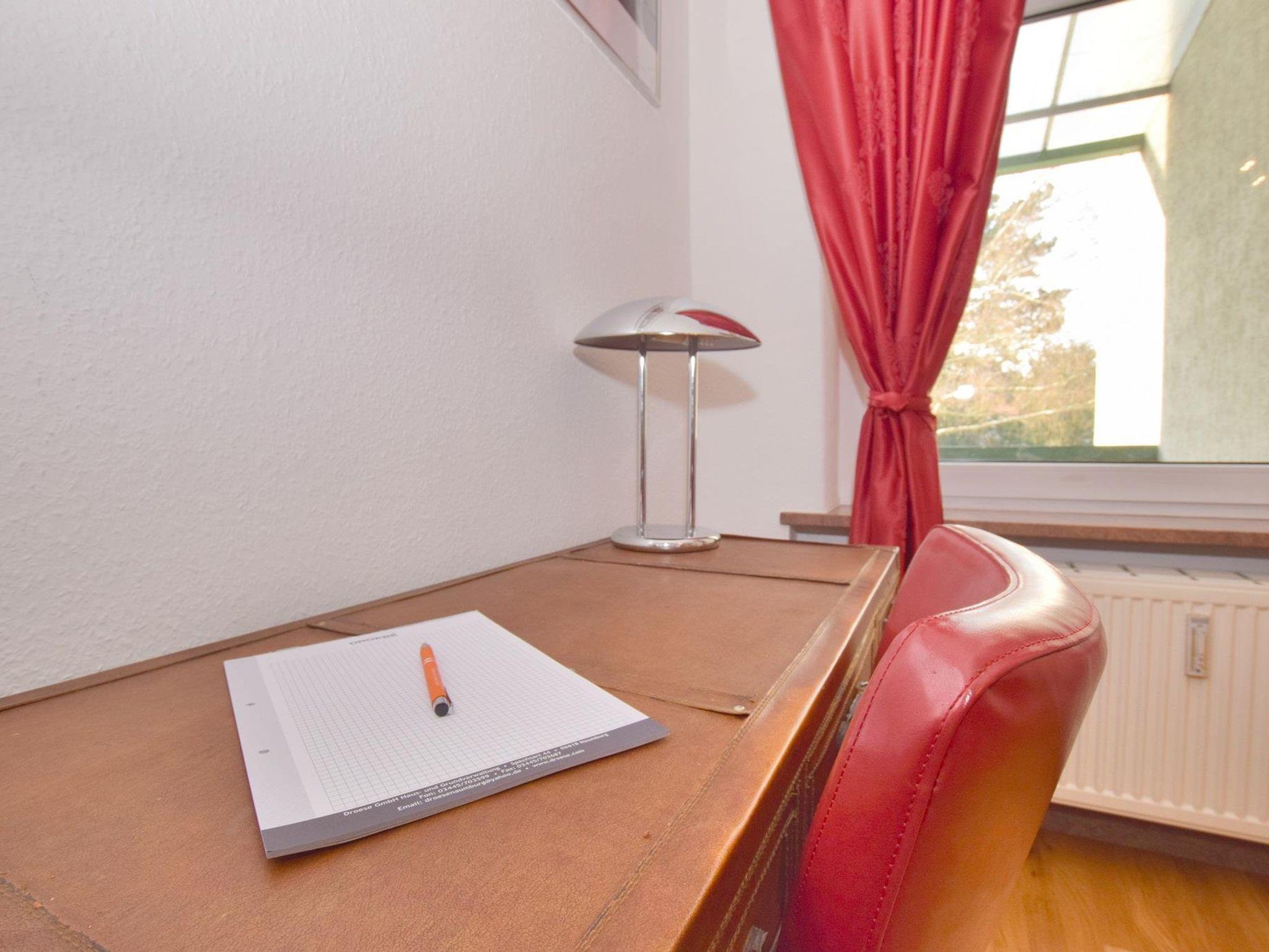 Adresse: Bürgergartenstraße 17 in Naumburg Wohnfläche ca. 80m², Küche, Bad, Schlafzimmer, Wohnzimmer einer Schlafcouch für 2 weitere Personen, Balkon Küche mit 4-Platten Ceranfeld, Spülmaschine, Spülmaschine, Kühlschrank mit Gefrierfach, Backofen, Microwelle, Toaster, Wasserkocher, Kaffeemaschine Im Wohnzimmer steht eine Schlafcouch für 2 weitere Personen zur Verfügung, TV mit DVD-Player Schlafzimmer mit Doppelbett und antikem Kleiderschrank Bad mit Dusche und Trockner/Waschmaschinenkombination Bettwäsche, Handtücher und die Endreinigung sind immer im Preis enthalten.