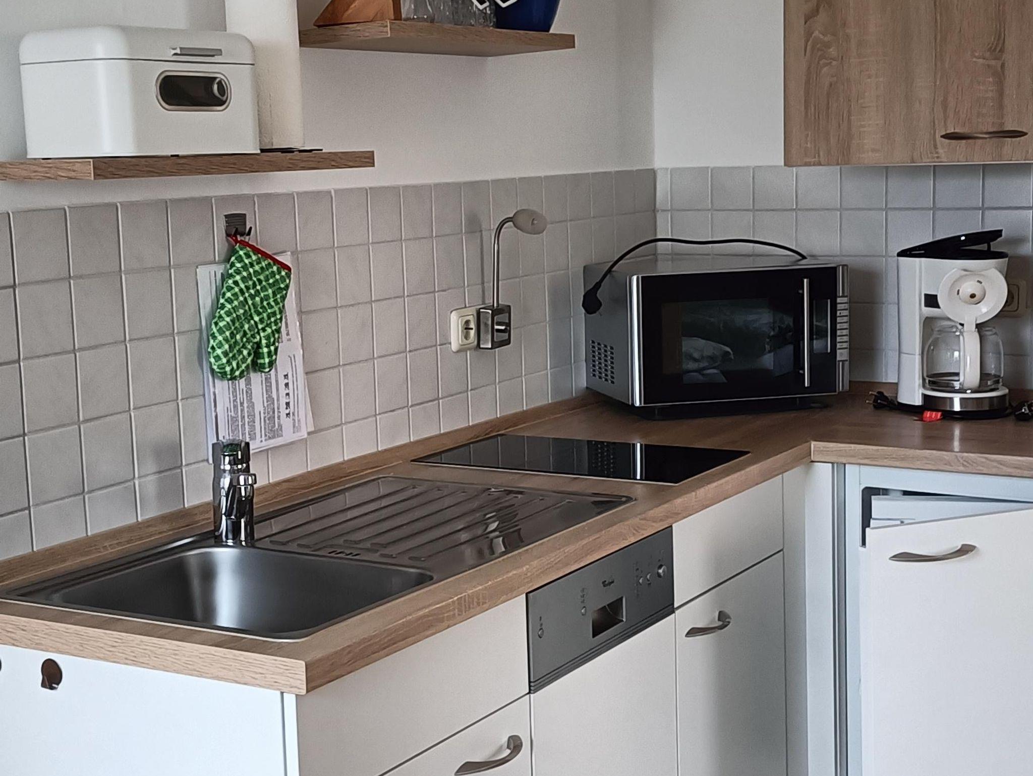 In der Küche befinden sich ein Geschirrspüler,ein Cerankochfeld,Mikrowelle,Kafeemaschine,Toaser und Wasserkocher und ausreichend Koch-und Essgeschirr.