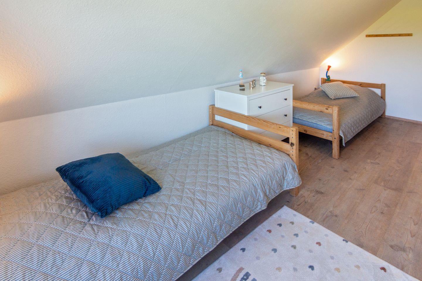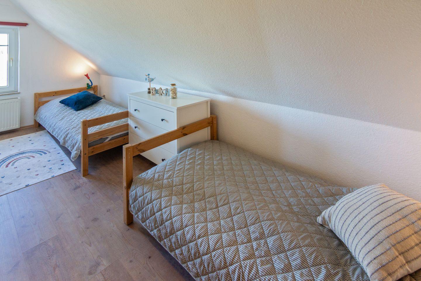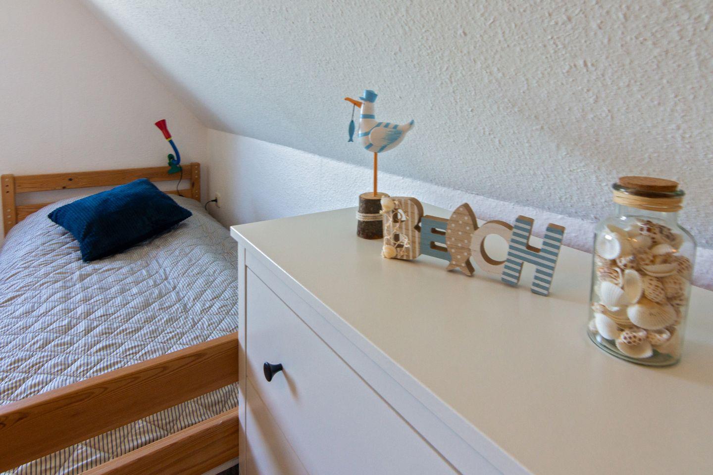 Die Wohnung verfügt über drei Schlafzimmer (1 Doppelbett, 1 Einzelbett, 1 Zimmer mit zwei Einzelbetten für Kinder), ein Badezimmer mit Dusche sowie ein zusätzliches Gäste-WC. Ein Babybett und ein Hochstuhl stehen ebenfalls zur Verfügung. Die geschlossene Küche ist gut ausgestattet mit Herd, Kühlschrank und Spülmaschine. Ein Esstisch lädt zu gemeinsamen Mahlzeiten ein.