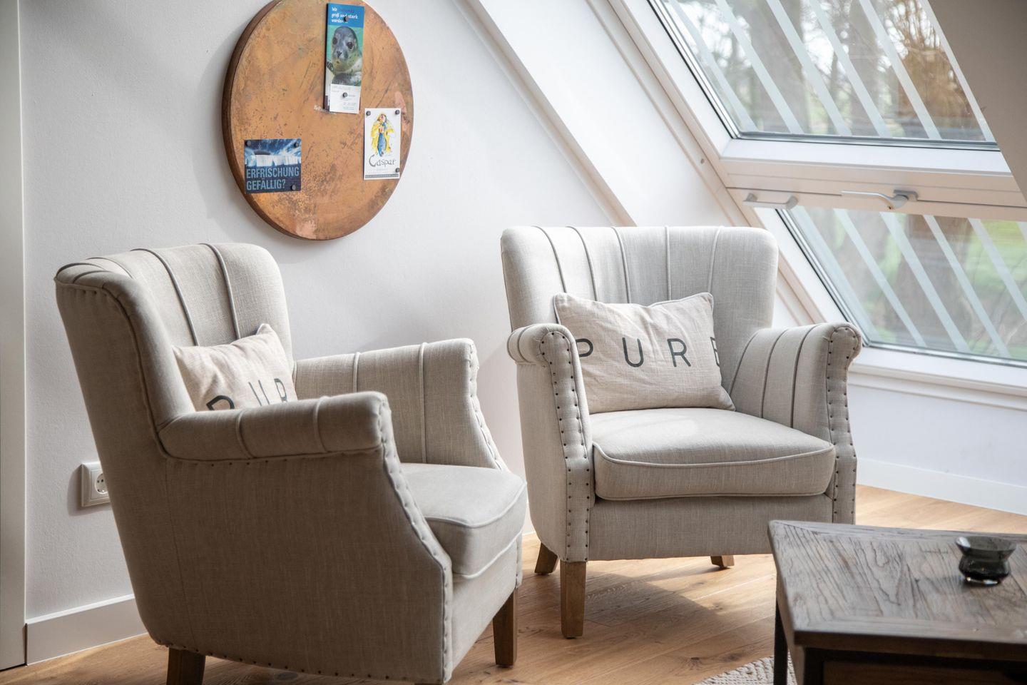 Tammo – das ist eine Ferienwohnung, die pure Gemütlichkeit ausstrahlt, ohne dabei den Sinn für das Besondere zu vergessen. Die Wohnung im Obergeschoss ist über die Scheune zugänglich und bietet mitten im wohltuenden Reizklima der nahe Nordsee einen fantastischen Blick ins Grüne. Genießt auf 61 qm zu viert eine wohltuende Auszeit in einer schönen Umgebung und nachts von den Schlafzimmern aus einen romantischen Blick in den Sternenhimmel. Wie in der gesamten Wohnung wurden auch im Bad mit Dusche und WC ausschließlich hochwertige Materialien verwendet. Das Badezimmer ist ein Ort zum Wohlfühlen und bietet ausreichend Ablagemöglichkeiten für Kosmetika und Co.