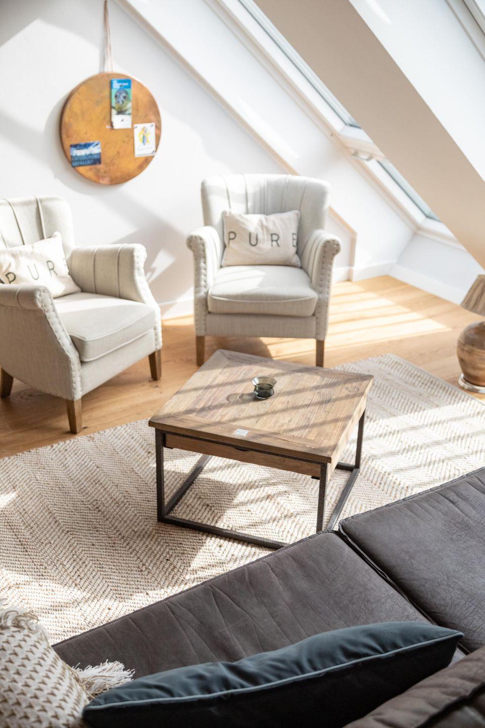 Der Clou an der Ferienwohnung Tammo sind die Fenster im Wohn- und Schlafzimmer, die sich beim Öffnen in einen kleinen Balkon verwandeln. Den Mittelpunkt der Wohnung bildet der offene Wohn-, Ess- und Küchenbereich. Luftig und zugleich urgemütlich lädt er zum Verweilen mit der ganzen Familie ein. Trefft euch am handgefertigten Esstisch oder zieh dich zum Relaxen mit einem guten Buch oder Musik oder aus der Bose-Soundbar auf die bequeme Ledercouch zurück. In der vollausgestatteten Küche wird das Kochen zu einem geselligen Vergnügen.