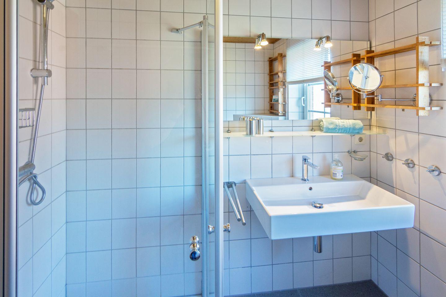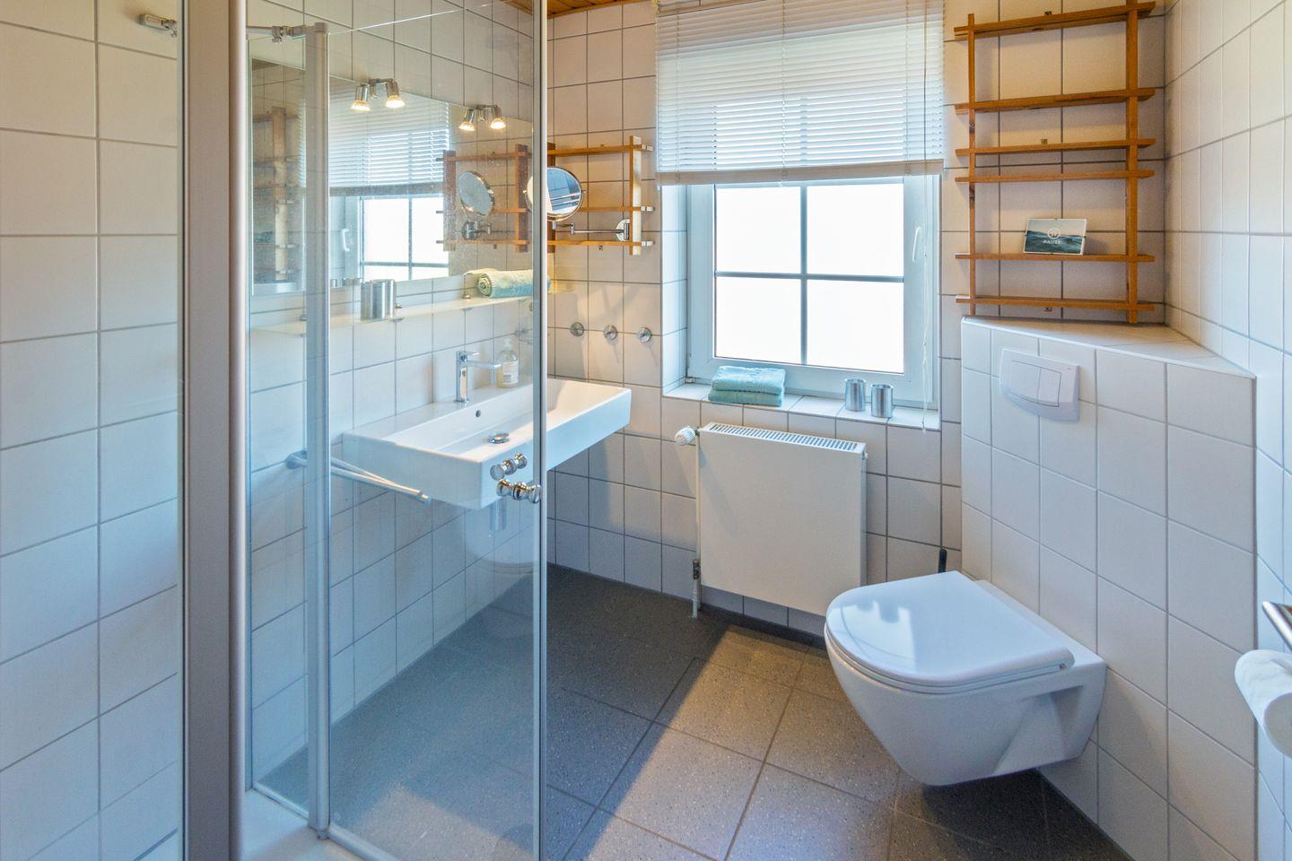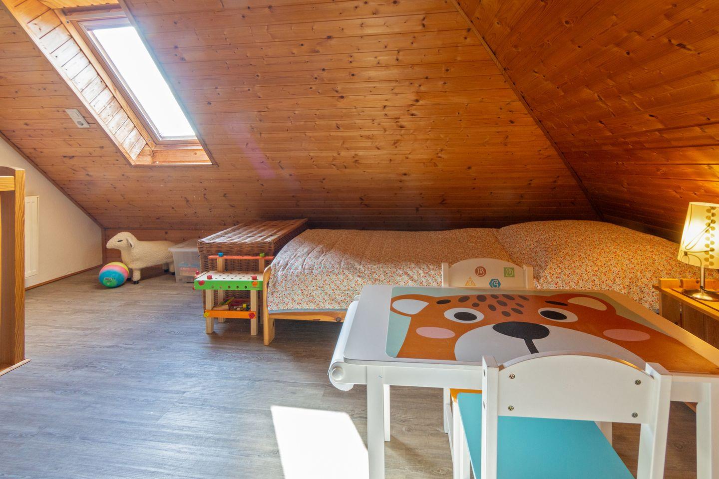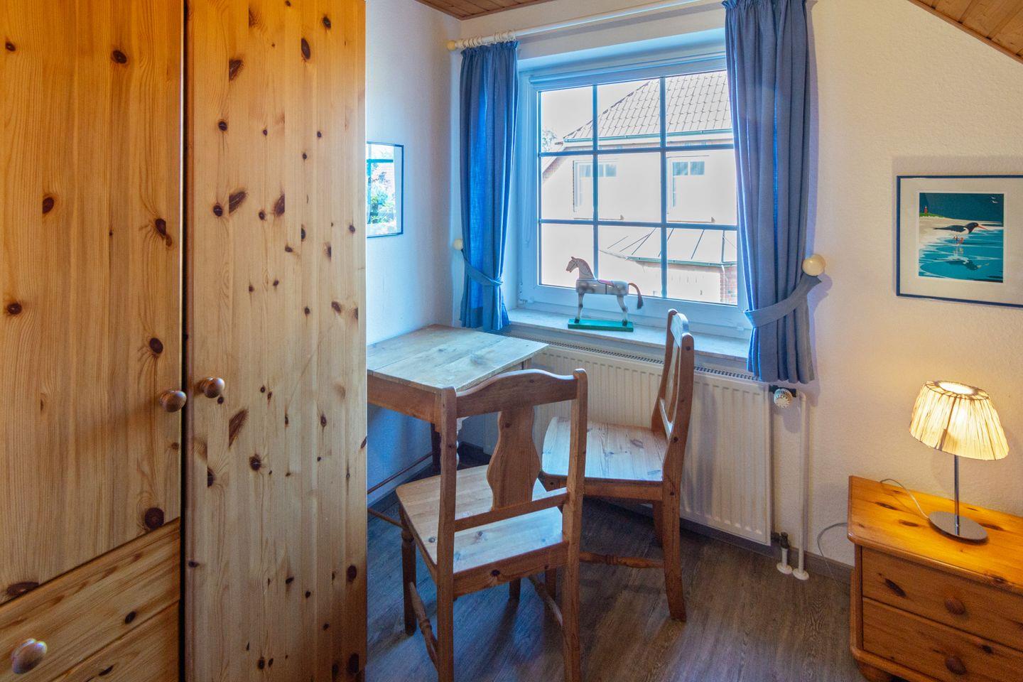 Im Obergeschoss befinden sich zwei Schlafzimmer mit pflegeleichtem Bodenbelag; das ausgebaute Dachgeschoss bietet zwei weitere Einzelbetten. Für die Kleinsten sind Babybett, Hochstuhl und Spielzeug vorhanden. Das Tageslichtbad verfügt über Dusche und WC. Fliegengitter und Rauchmelder sorgen für Sicherheit und Wohlbefinden.