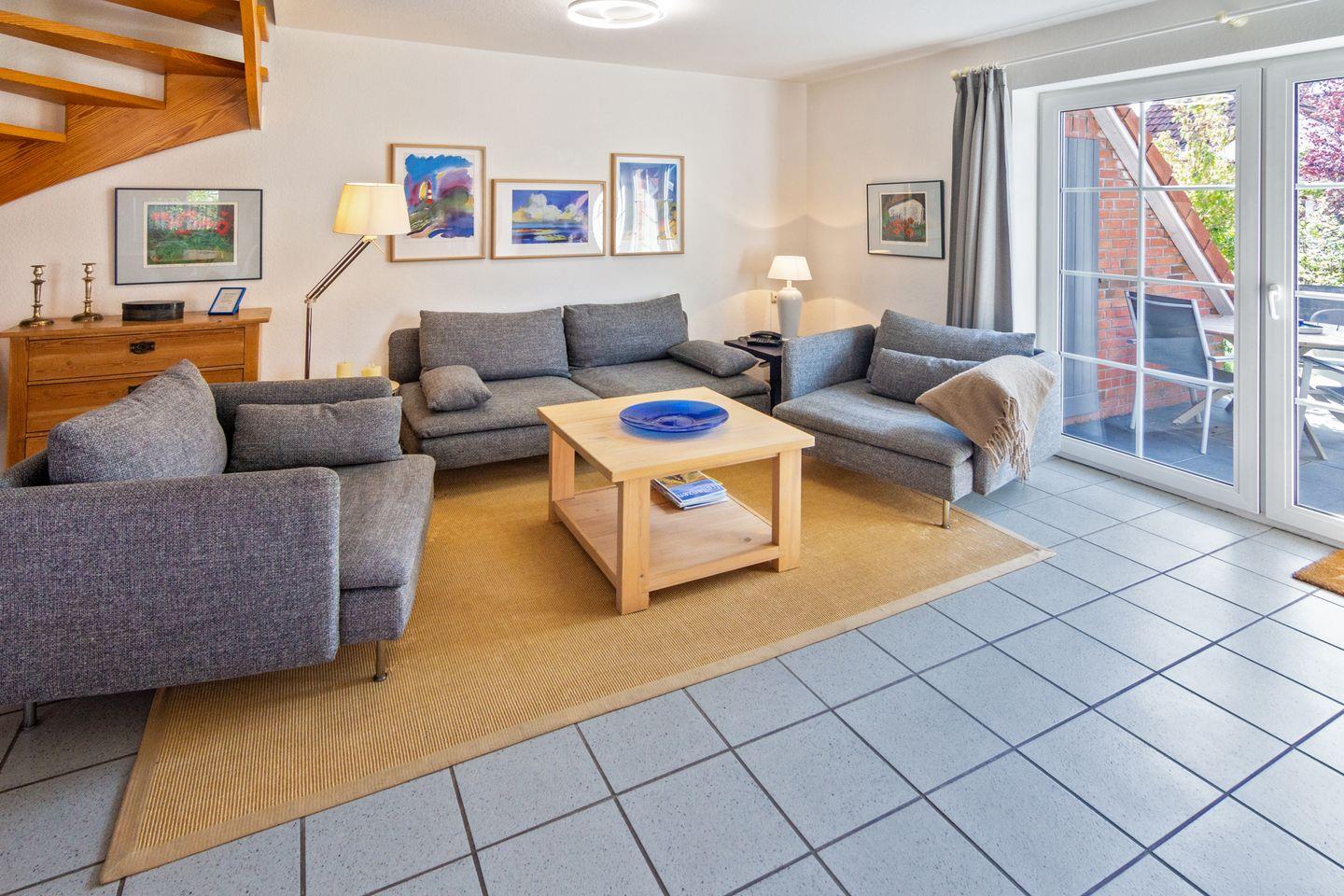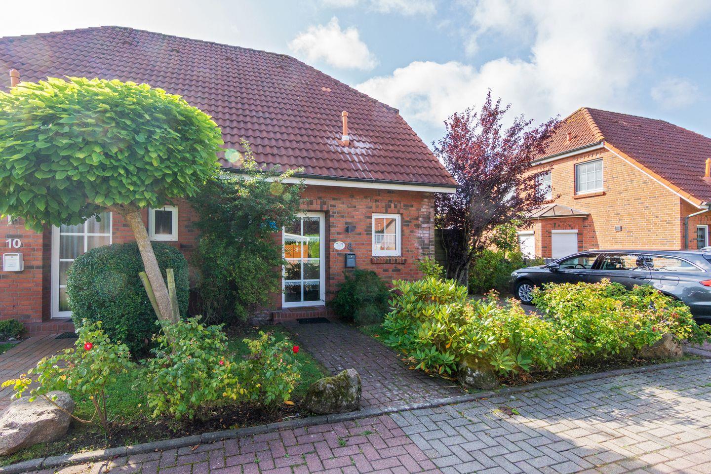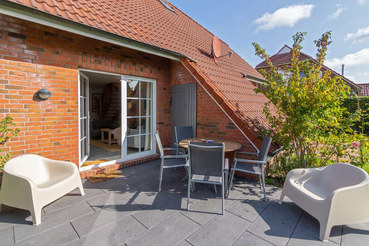 Der gepflegte Garten mit möblierter Terrasse, Sonnenliege, Grill und Sonnenschirm lädt zum Entspannen ein. Ein Privatparkplatz steht direkt am Haus zur Verfügung. Einkaufsmöglichkeiten und Restaurants sind nur 300?m entfernt, der Nordseestrand ist bequem in ca. 2,5?km erreichbar.
