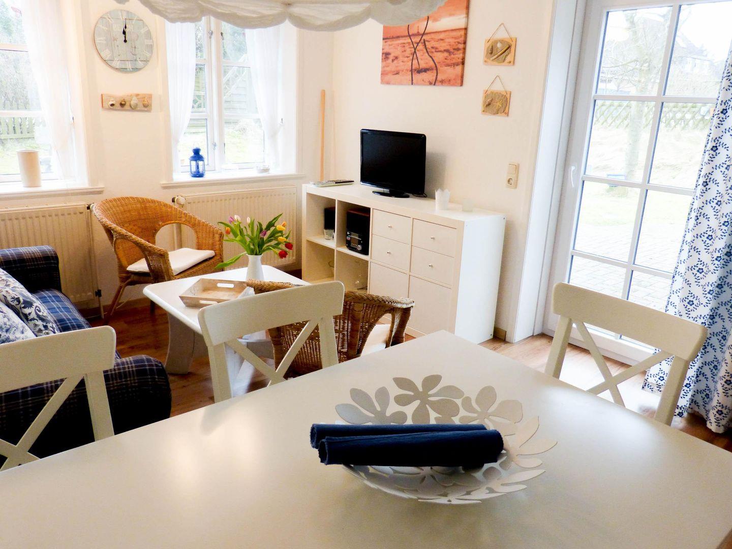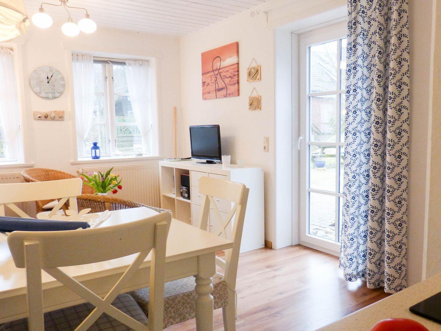 Die persönlich, liebevoll eingerichtete Wohnung verfügt über zwei Schlafzimmer, in denen bis zu vier Personen Platz finden. Hier können Sie nach einem aufregenden Tag an der Nordsee zur Ruhe kommen und die Seele baumeln lassen. Der einladende Wohnbereich umfasst eine Sofaecke und einen Essbereich, ideal für gesellige Spieleabende oder entspannte gemeinsame Mahlzeiten. Von hier aus haben Sie auch Zugang zur Terrasse, die von April bis Oktober mit Gartenmöbeln und Strandkörben ausgestattet ist. Der Vermieter stellt kostenfreies WLAN zur Verfügung.