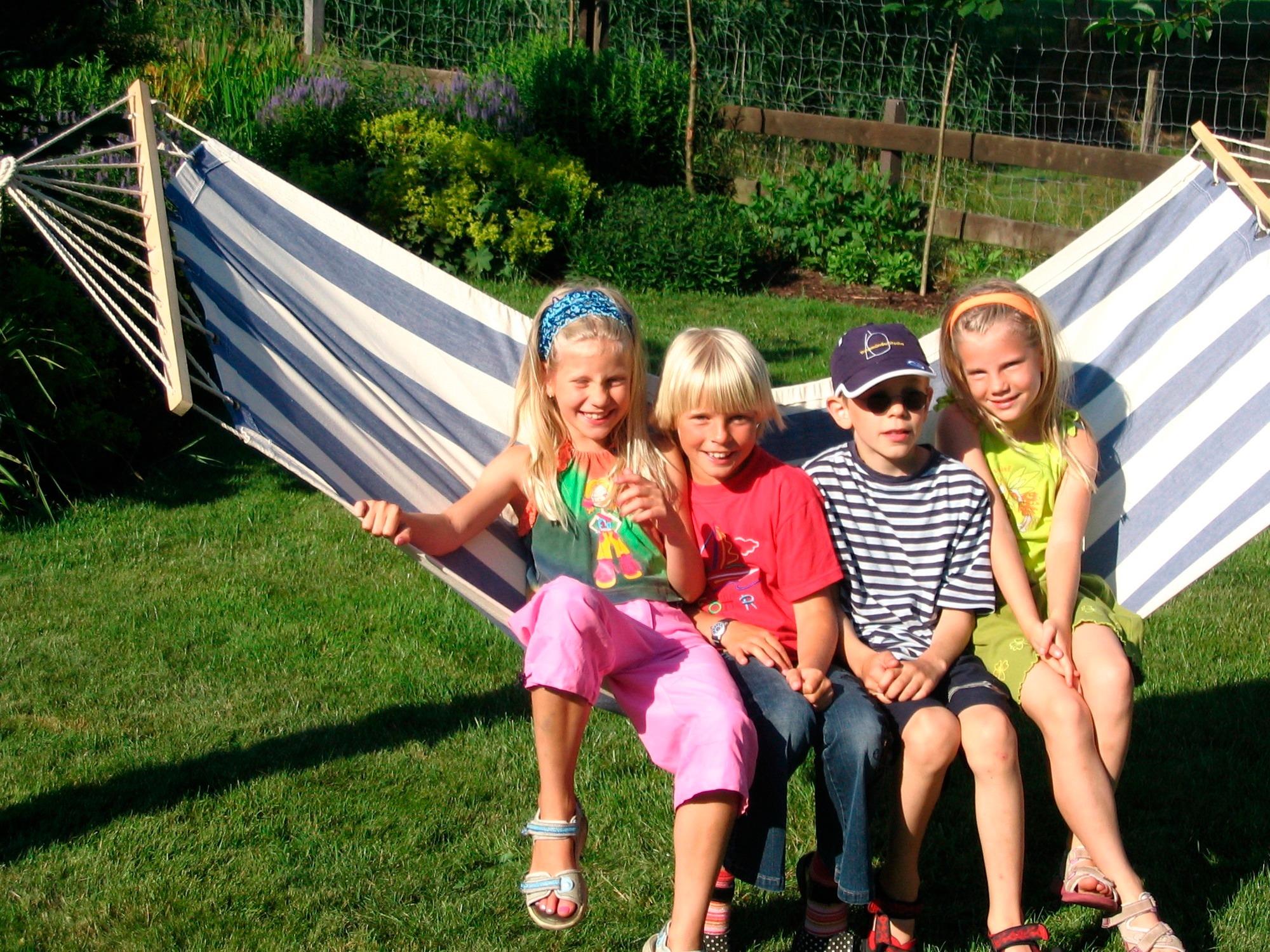 Unser großer, baumbewachsener Garten bietet Ruhe und Entspannung, aber auch vielfältige Spiel- und Freizeitmöglichkeiten für Klein und Groß. Direkt an das Haus grenzt ein Wildgehege mit Sikahirschen. Die Ostsee und das Ostseebad Eckernförde sind 16 km, die Kreisstadt Rendsburg 8 km entfernt. Beide Städte sind durch eine stündliche Busverbindung direkt zu erreichen.