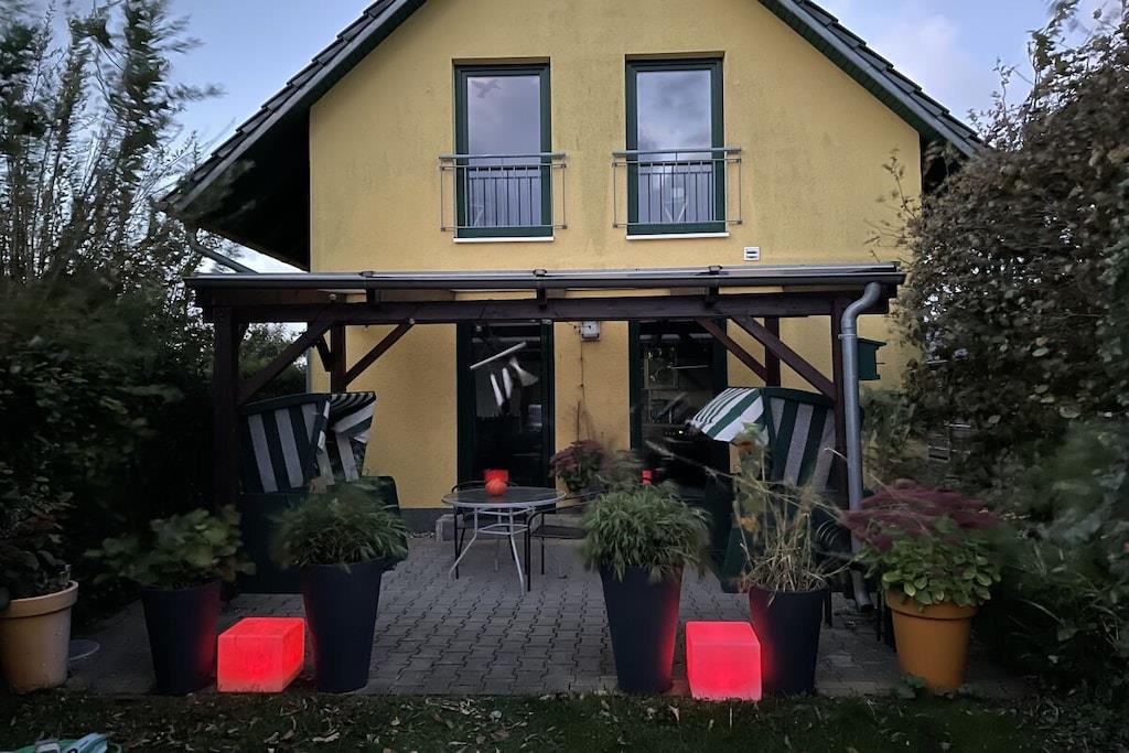 Mysigt och högkvalitativt möblerat parhus direkt vid Saaler Bodden. Vi erbjuder möjligheten att hyra vår roddbåt för 50 EURO per vecka. Vår övervåning rymmer upp till sex personer. Två av sovrummen är möblerade med varsin dubbelsäng och TV. Det tredje sovrummet har en alkov (sovloft). Vårt utomhusområde har en täckt terrass med olika sittplatser, solstolar, strandstolar och grill, samt möjlighet att låna våra cyklar. Två parkeringsplatser. En avkopplande tillflyktsort för naturälskare och cyklister, med många aktiviteter för vattensportsentusiaster. Driftskostnader debiteras enligt förbrukning.