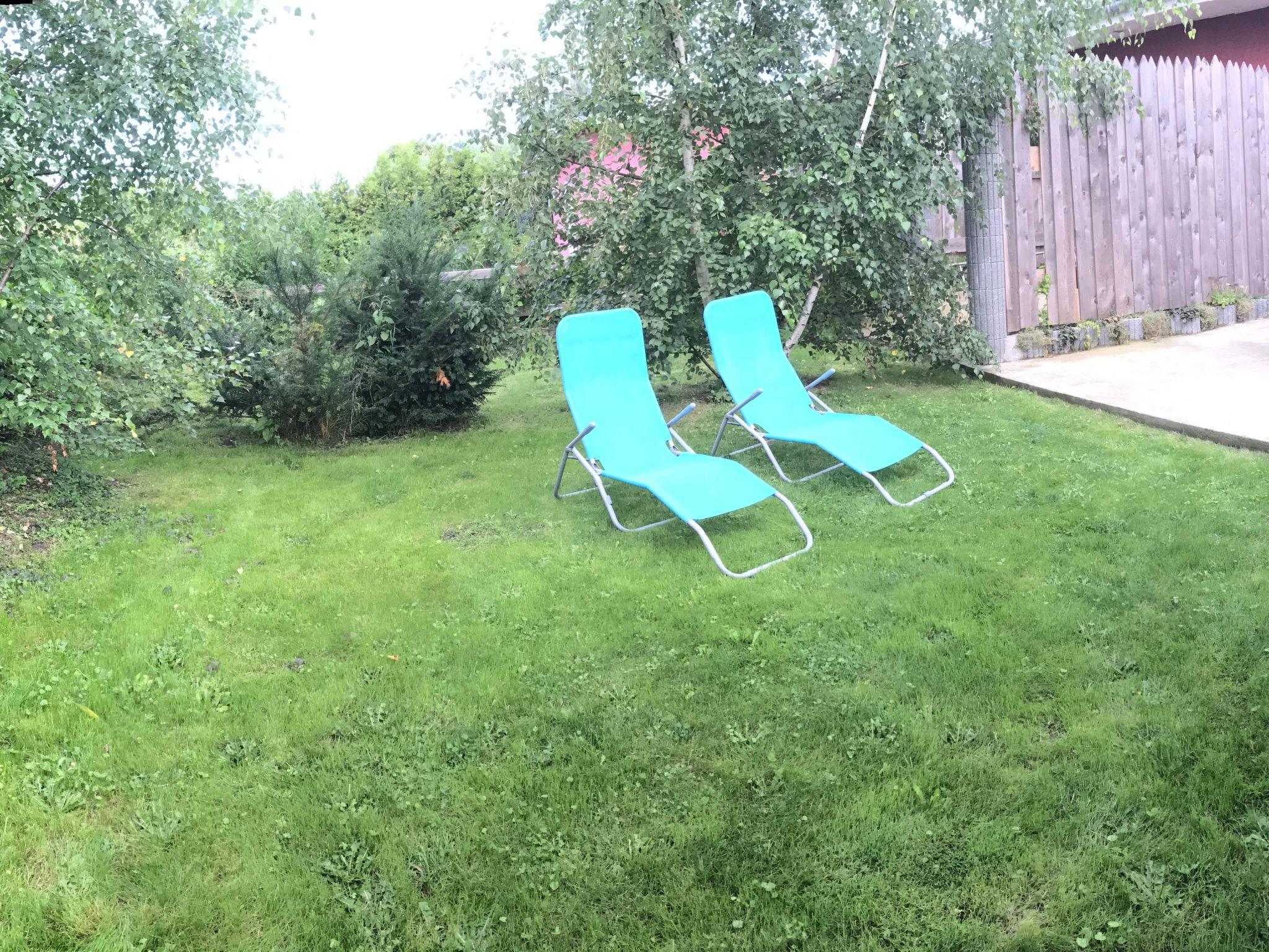 The large terrace is accessible via the living room and is equipped with garden furniture and a barbecue. It is fenced and approx. 130 m² in size. The entire outdoor area is approx. 3890 m² in size and can be shared. There is a playground with swing, digging box & trampoline. Two free parking spaces belong to the holiday flat.