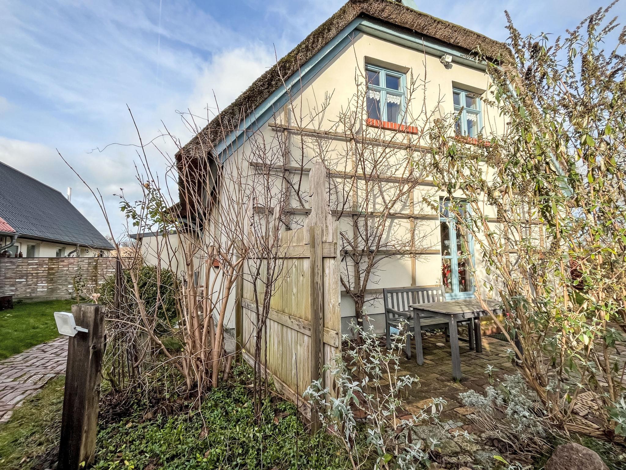 "Reetgedecktes Ferienhaus Seelchen", 3-room house 75 m2 on 2 levels. Tasteful and stylish furnishings: living/dining room with Scandinavian wood stove, dining table and cable TV (flat screen). Exit to the terrace. Open kitchen (oven, dishwasher, 4 ceramic glass hob hotplates, toaster, kettle, electric coffee machine). Shower/WC. Upper floor: 1 room with 1 double bed (180 cm, length 200 cm) with 1 double bed (160 cm, length 200 cm). Terrace. Terrace furniture. Facilities: children's high chair, baby cot, hair dryer. Internet (WiFi, free). Parking (1 car). Please note: suitable for families. Non-smokers only. Maximum 1 pet/ dog allowed.