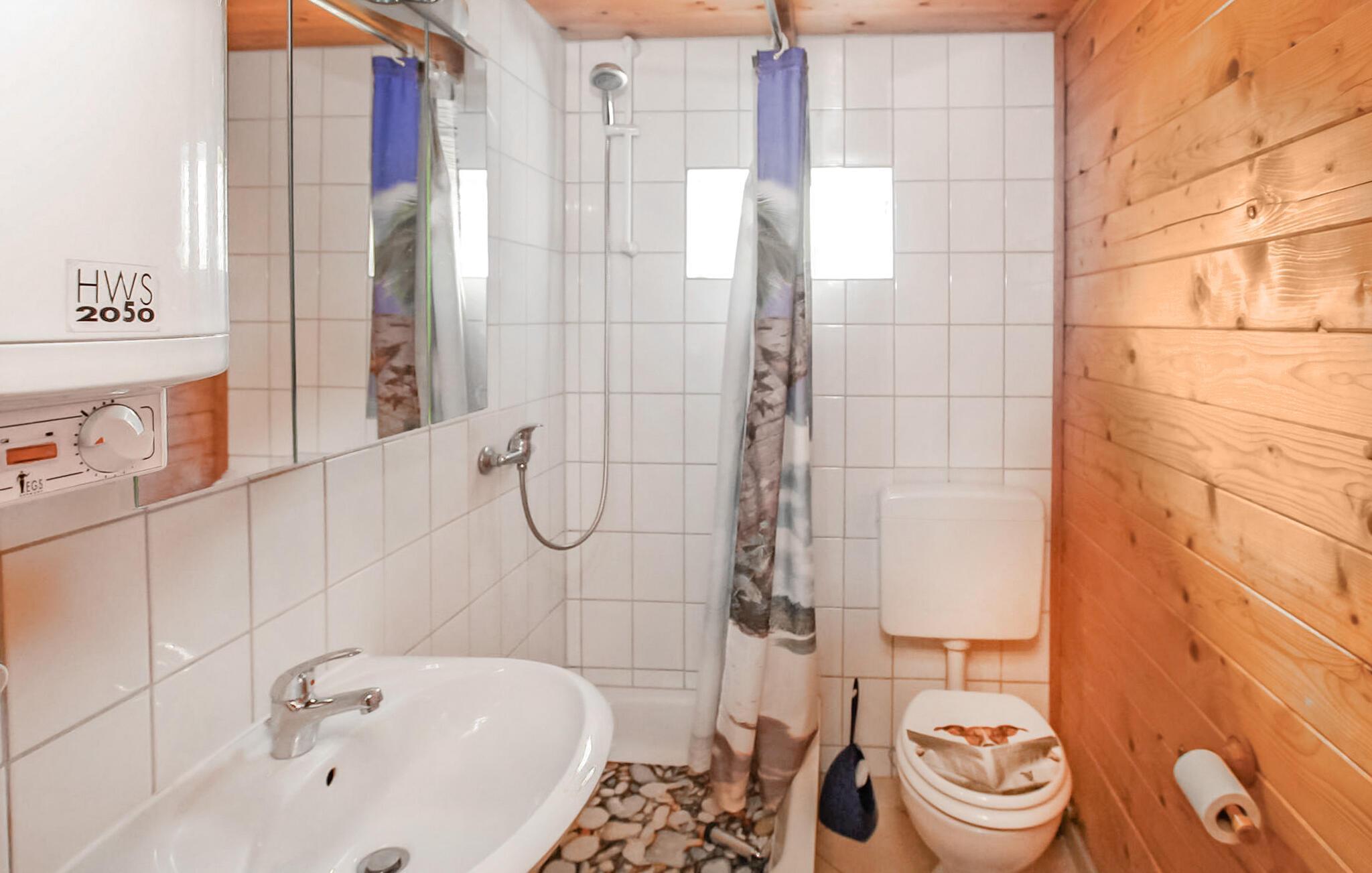 Den lilla timmerstugan ligger på en separat fritidsfastighet på ca 800 kvadratmeter, avskild från ägarens bostadsfastighet, i utkanten av byn. Den har ett vardagsrum (stoppade möbler med sovfunktion, fåtölj, platt-TV, radio/CD), ett litet sovrum (dubbelsäng, rummet är helt fyllt av sängen), ett sovloft för barn med madrass (tillval, eftersom det är mycket trångt under taket), ett kök i öppen planlösning (elspis, kylskåp med frysfack, matplats, diverse köksmaskiner), badrum med dusch/WC samt insektsnät och elvärme. Till huset hör en täckt, möblerad terrass med grill, solstol och en parkeringsplats. Cyklar kan hyras efter överenskommelse. I det totala priset ingår: Sängkläder, vatten- och energiförbrukning. Handdukar måste tas med. Betalas på plats: Uppvärmning enligt förbrukning. Husdjur: Endast en liten hund upp till en storlek av 40 cm är tillåten i detta boende.