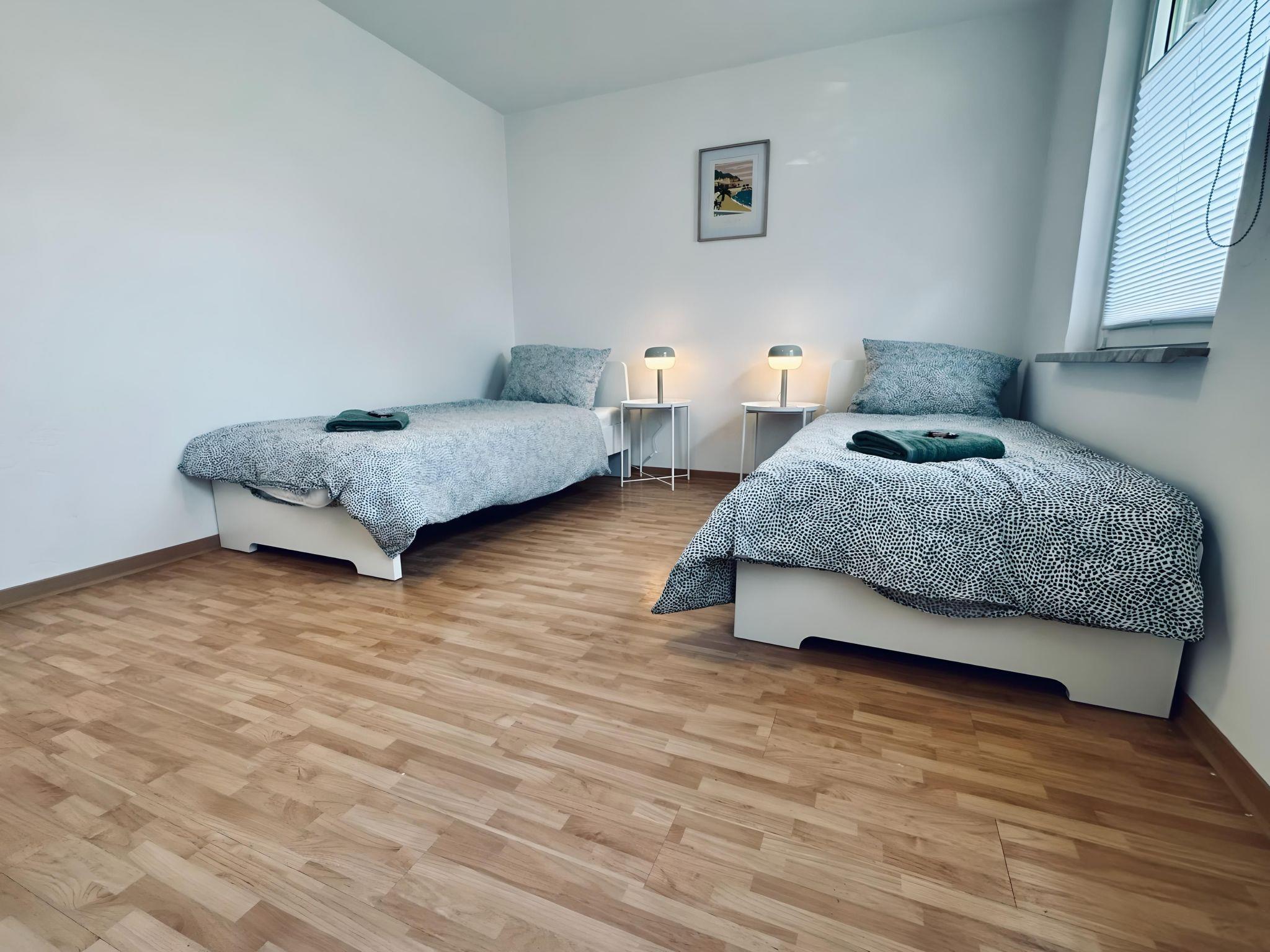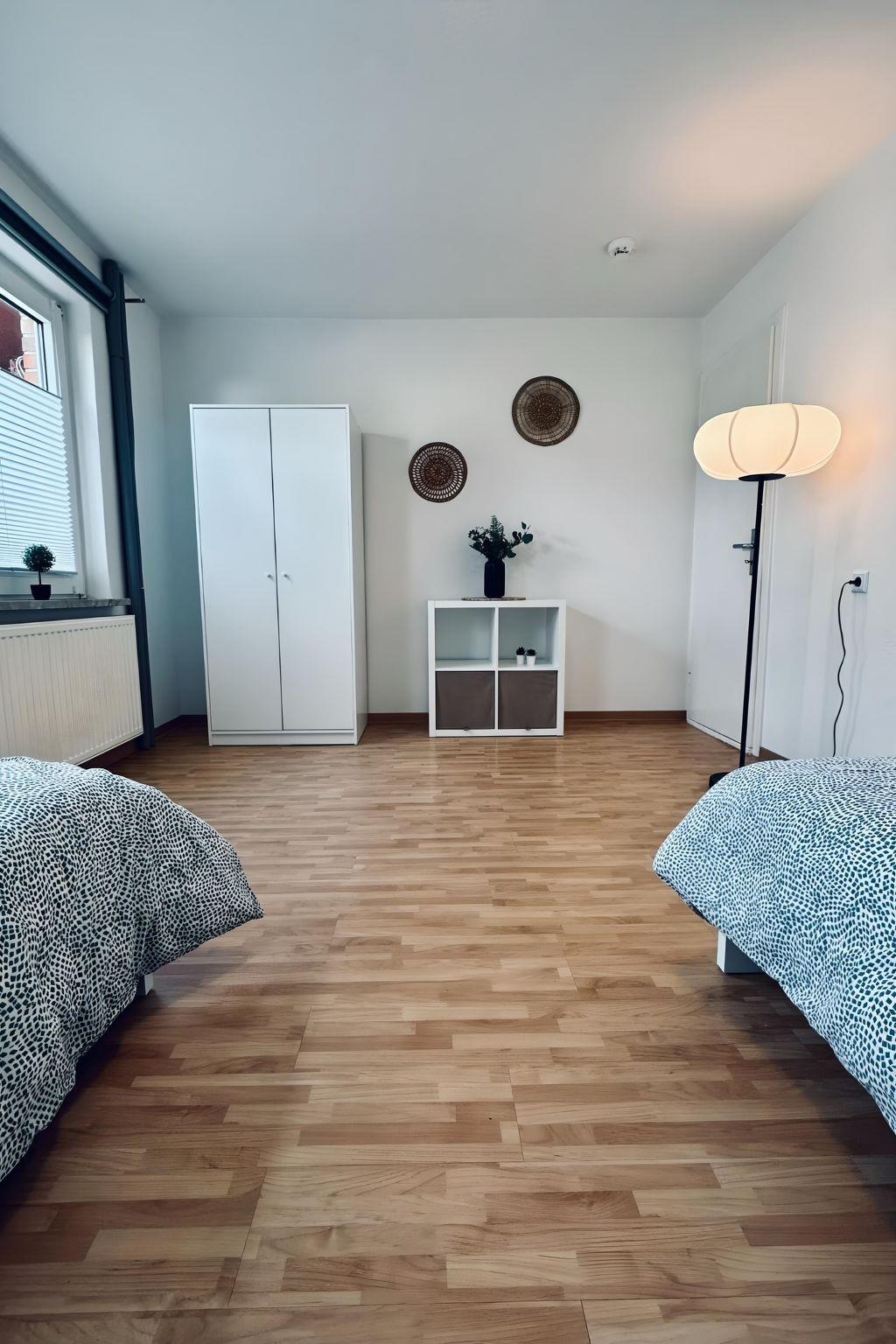 Welcome to NeuenHOUSE I - perfect for families or groups who love peace & space. The flat is located on the ground floor and offers three bedrooms, each with two single beds ?????????, a modern bathroom ?? and a kitchen with all the necessary equipment to cook together ??. The garden invites you to relax. Pets are welcome ??, parking is available free of charge. Fully contactless check-in via key box - you will receive the code shortly before arrival.