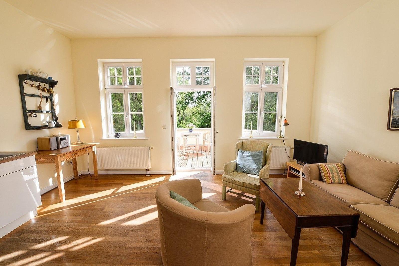 Die Ferienwohnung 7 befindet sich im 2. OG des Gut Grubnow, mit herrlichem Blick auf das Wasser.