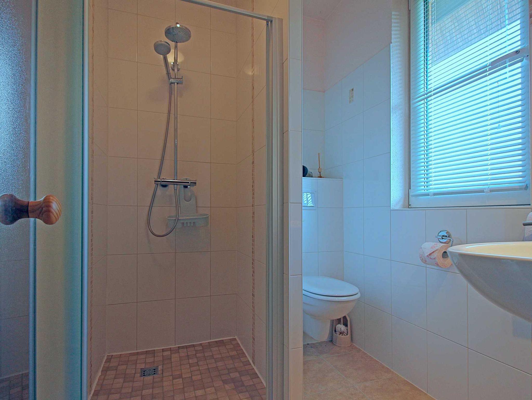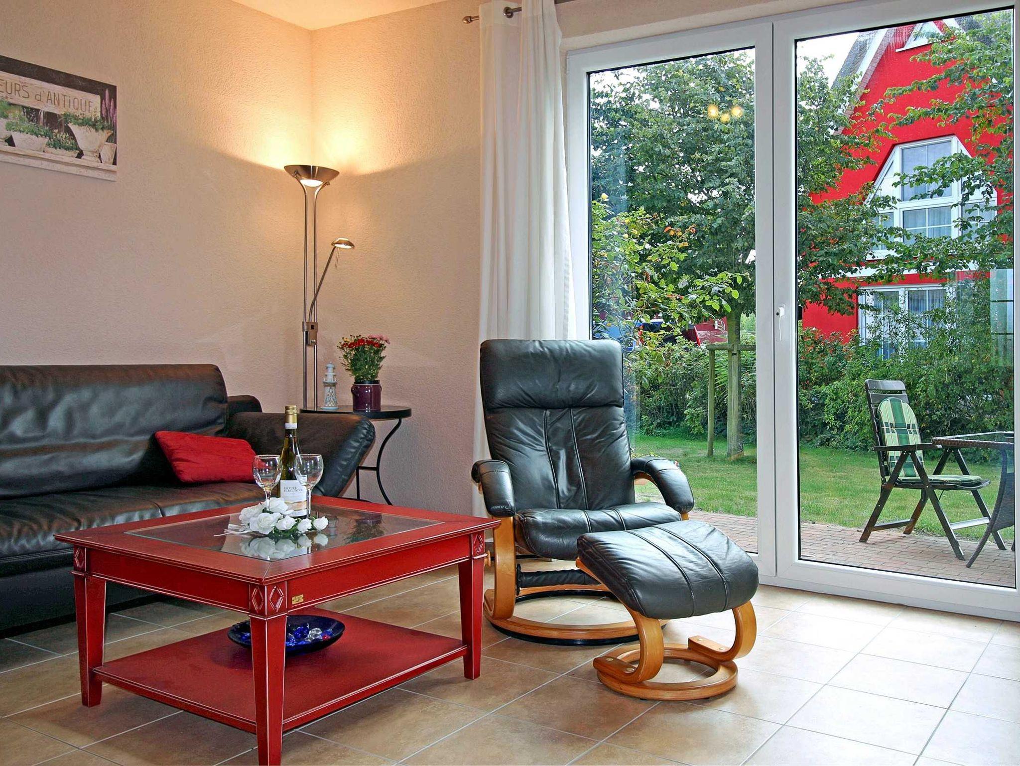 Im Erdgeschoss befindet sich der großzügige, helle Wohn- und Essbereich mit gemütlicher Sitzecke und Relax-Sessel, Kaminofen, SAT-TV und Radio-CD. Bücher, Spiele und DVDs laden zu gemütlichen Abenden ein. Ebenfalls im Wohnbereich im Erdgeschoss befindet sich eine offene Landhaus-Küche mit 4-Platten-Kochfeld, Backofen, Geschirrspüler, Kaffeemaschine, Toaster, Mikrowelle und allen nötigen weiteren Küchenutensilien. Das Bad im Erdgeschoss ist ausgestattet mit Dusche und WC. Auch eine kleine Sauna ist hier vorhanden.