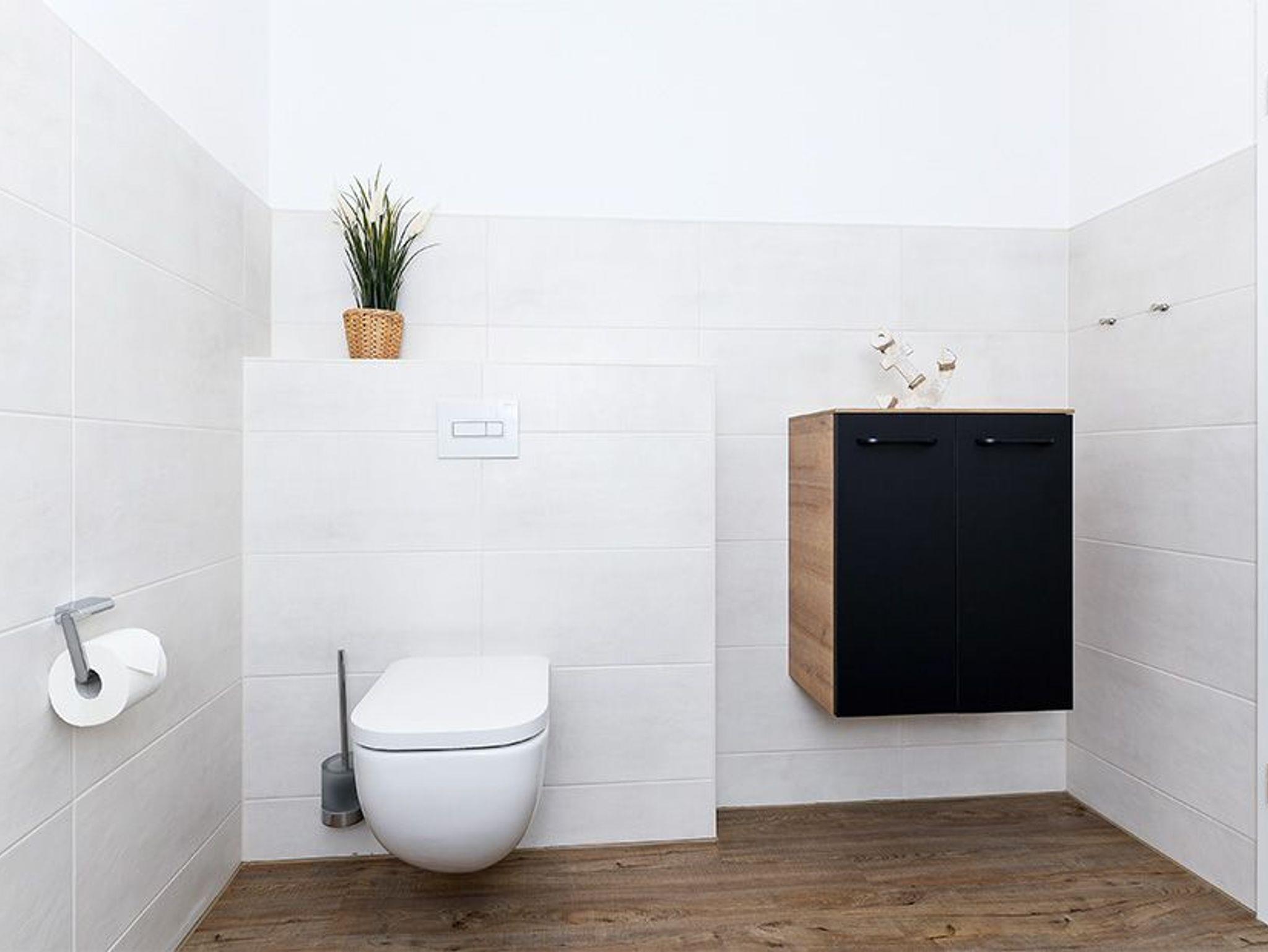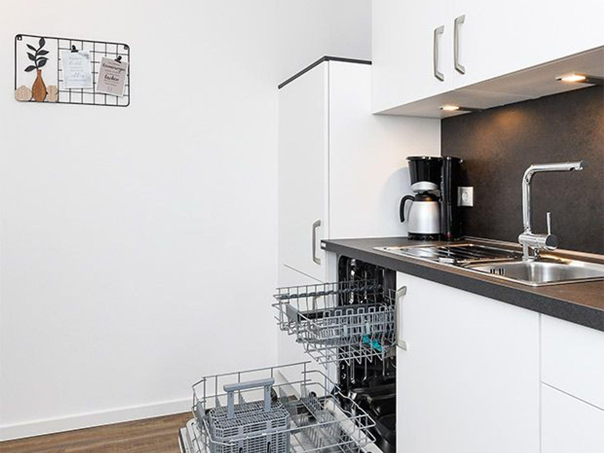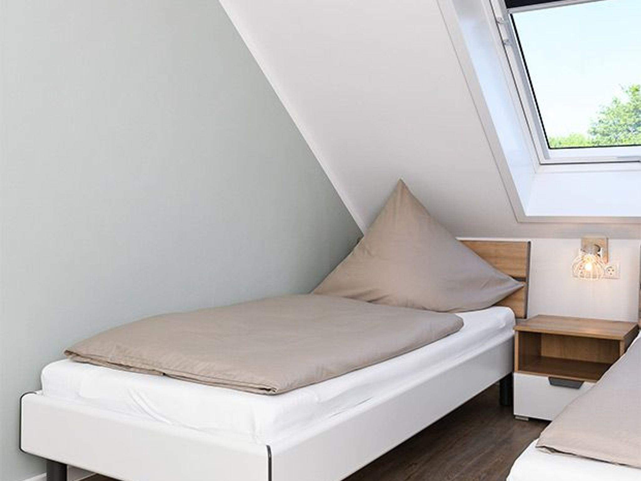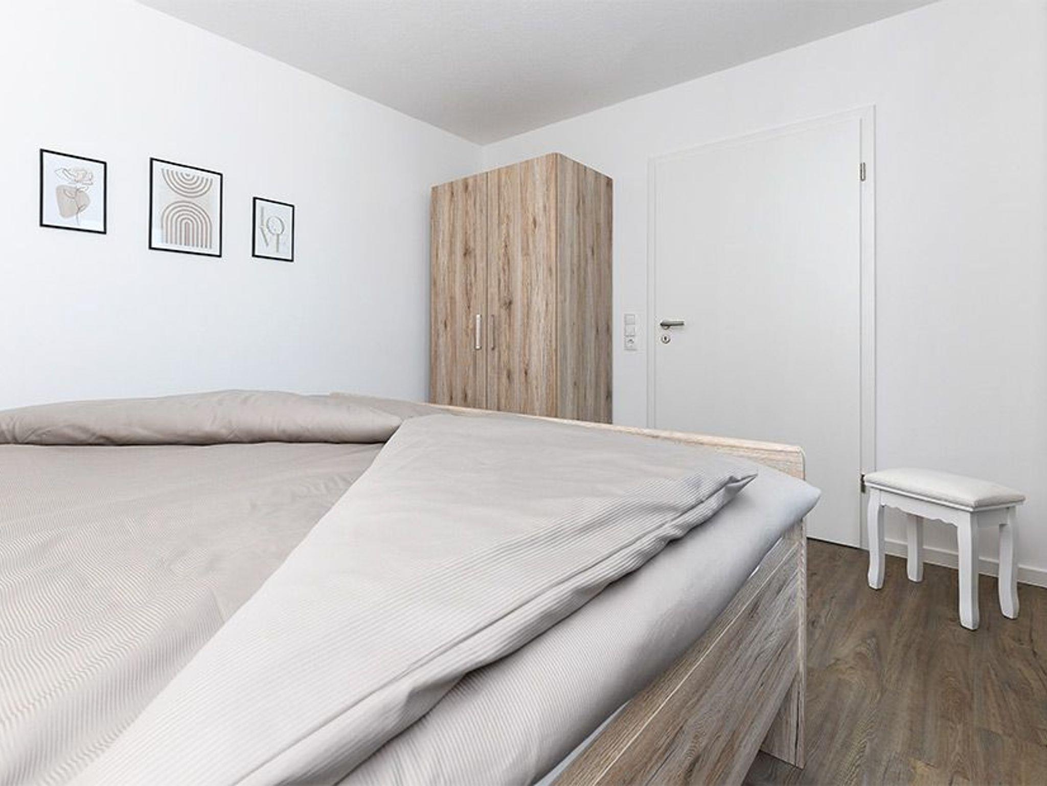 Größe ca. 64 Quadratmeter. Wohnraum mit integrierter Küche. Schlafzimmer, zweites separates Schlafzimmer/Kinderzimmer, Badezimmer mit Dusche, Waschtisch und WC, Obergeschoss, optimal für 2 bis 4 Personen.