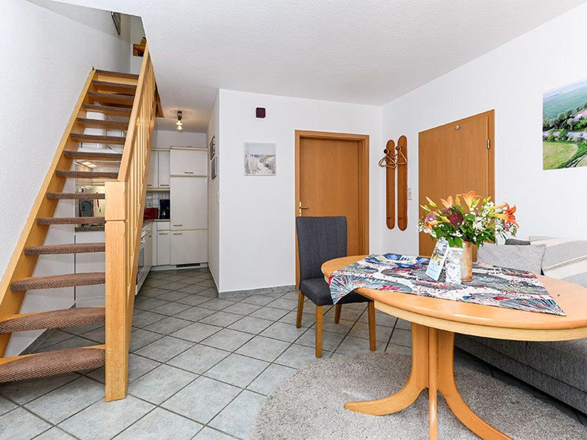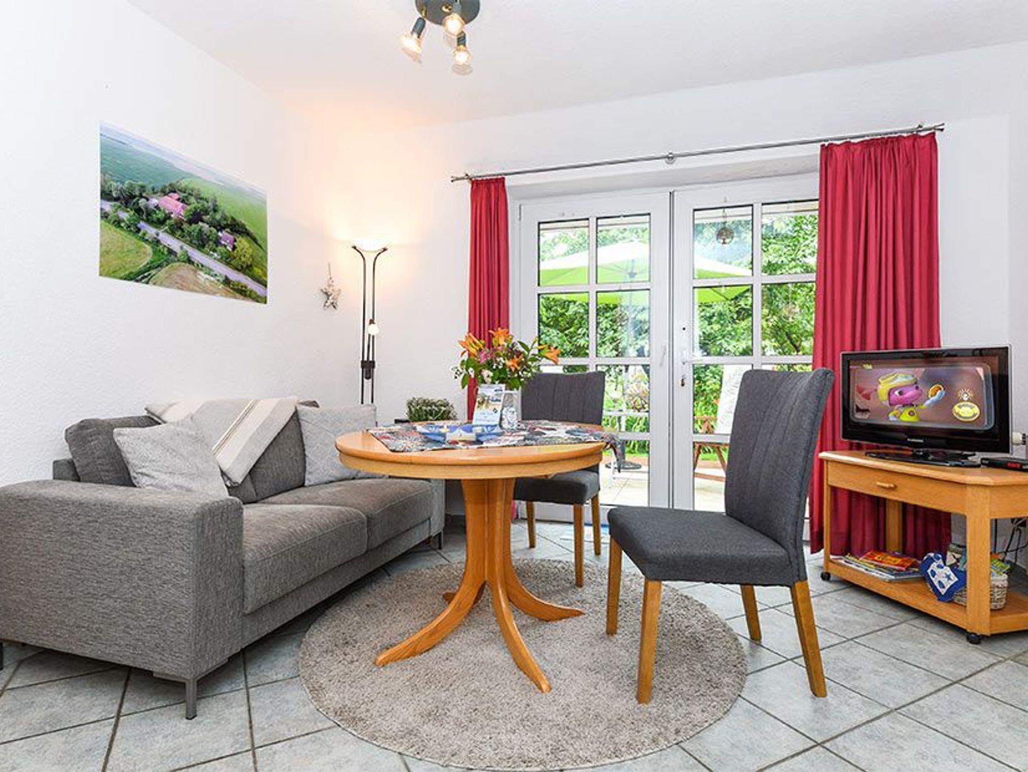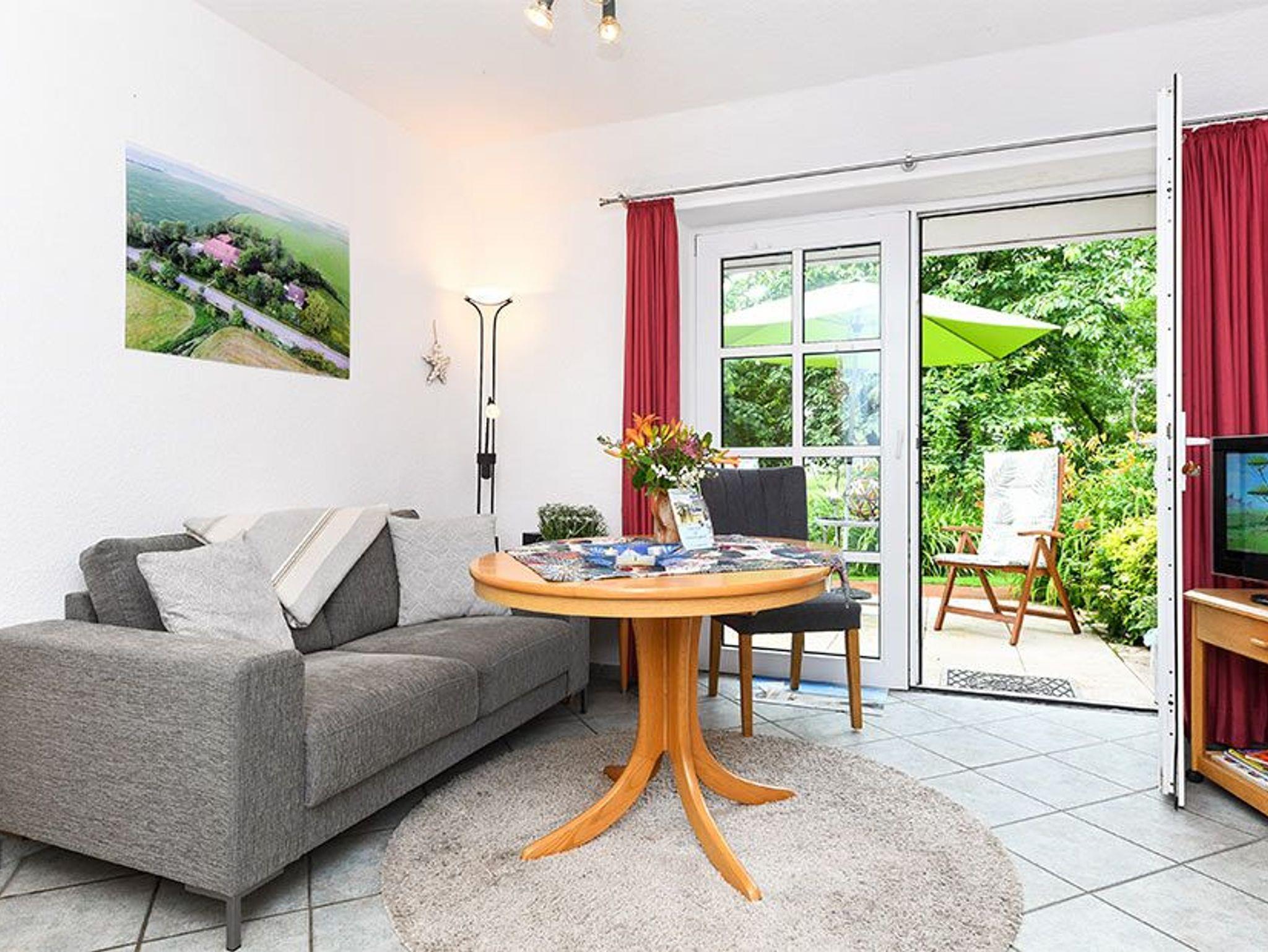 Größe ca. 45 Quadratmeter, Wohnraum mit integrierter Küche, Schlafzimmer, Badezimmer mit Dusche, Waschtisch und WC, Erdgeschoss, Terrasse, optimal für 2 bis 3 Personen.