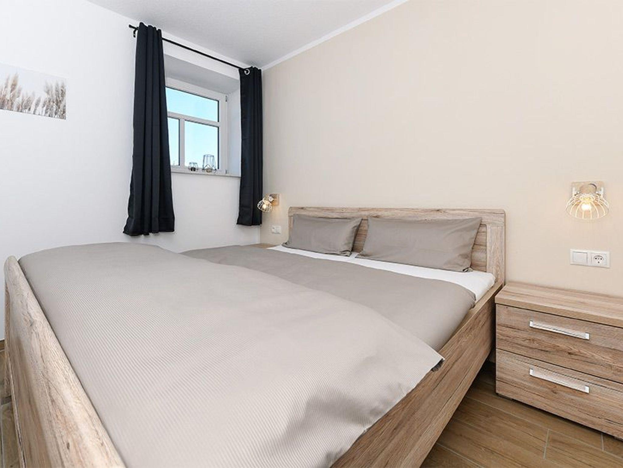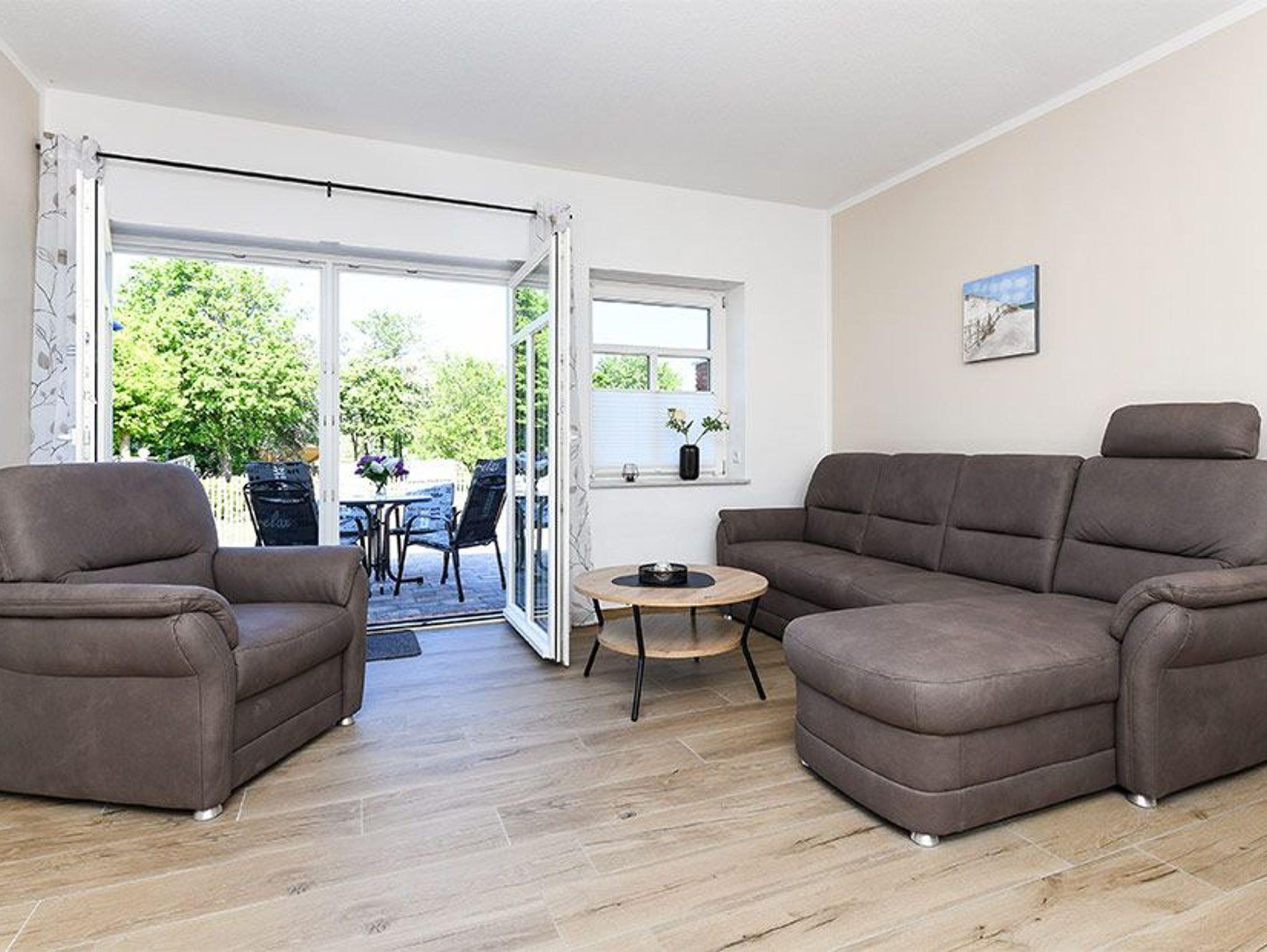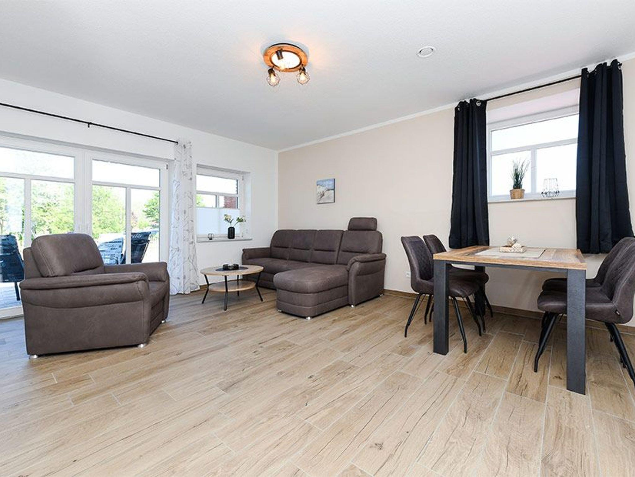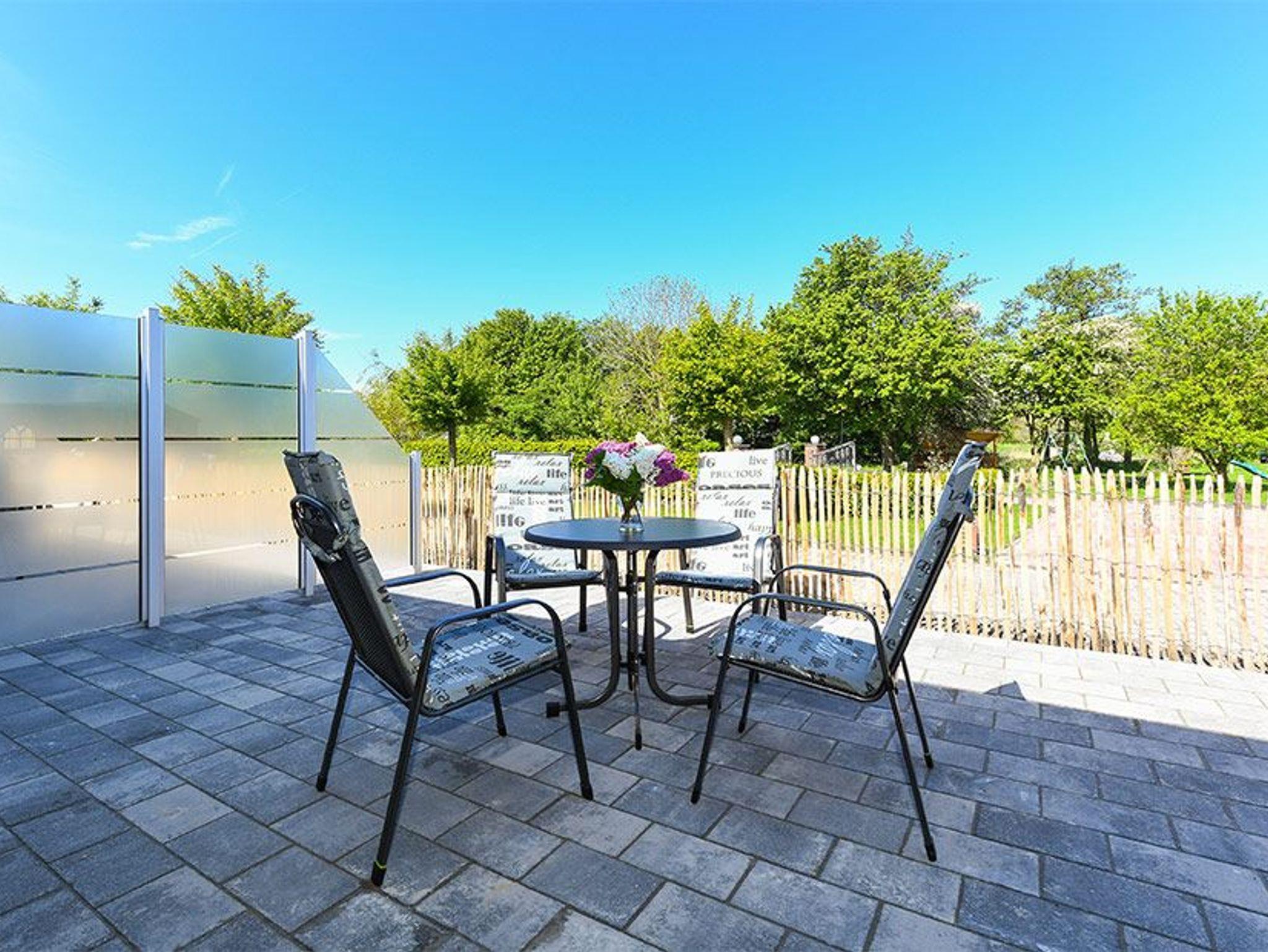 Größe ca. 60 Quadratmeter, Wohnraum mit integrierter Küche, Schlafzimmer, zweites separates Schlafzimmer/Kinderzimmer, Badezimmer mit Badewanne, Dusche, Waschtisch und WC, Erdgeschoss, Terrasse, optimal für 2 bis 4 Personen.