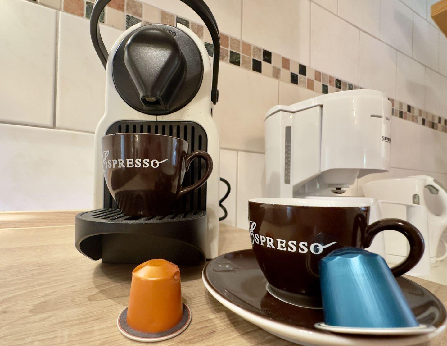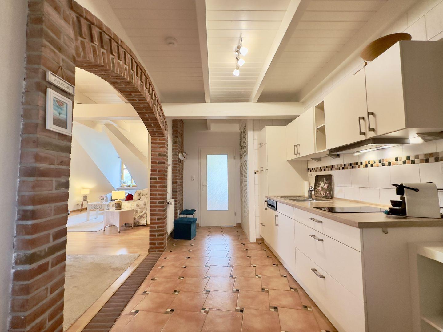 Der wunderschöne, verklinkerte Rundbogen führt Sie in die vollständig ausgestattete Küche, die alles bietet, was Sie für Ihre Selbstversorgung benötigen. Besonders hervorzuheben ist die Nespresso-Maschine, die Ihnen die Gelegenheit gibt, sich mit einem frisch gebrühten Kaffee und einem leckeren Stück Kuchen zu verwöhnen.