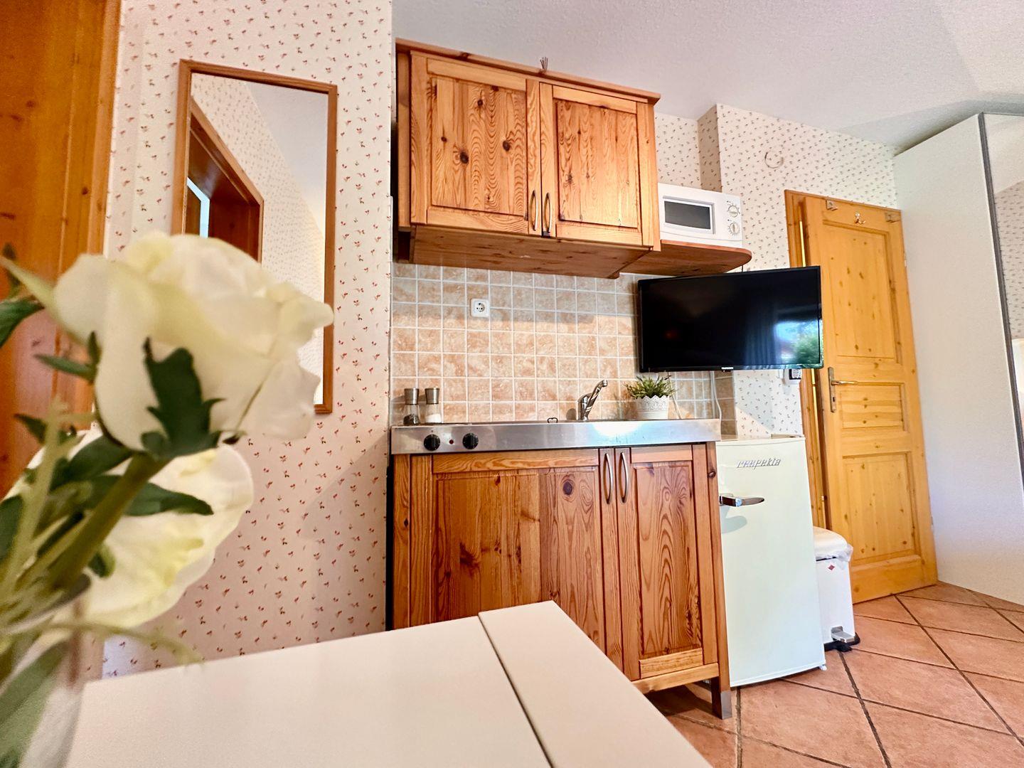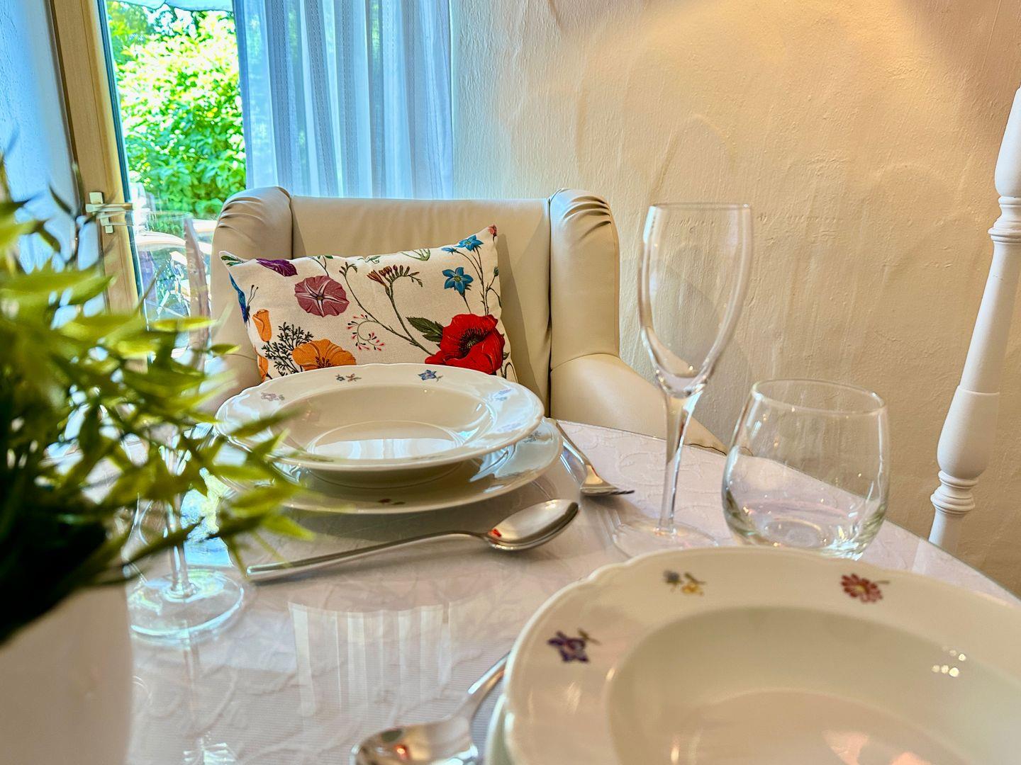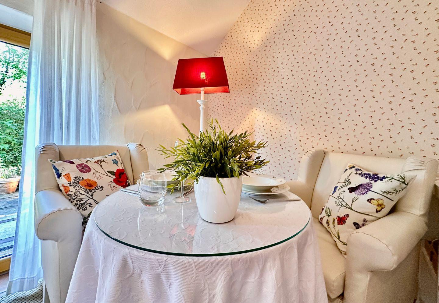 Die kleine, aber durchdachte Kochnische bietet alles, was Sie für eine unkomplizierte Selbstversorgung brauchen – ideal für ein gemütliches Frühstück oder ein selbstgekochtes Abendessen. Die Sitzecke bietet dabei genügend Platz, um gemeinsam bei Kerzenschein zu speisen und den Tag ausklingen zu lassen.