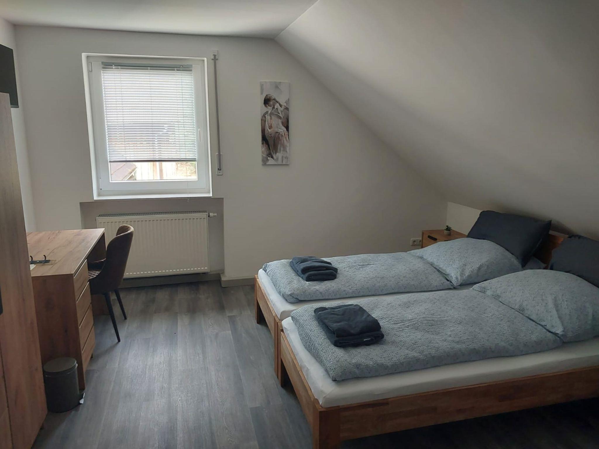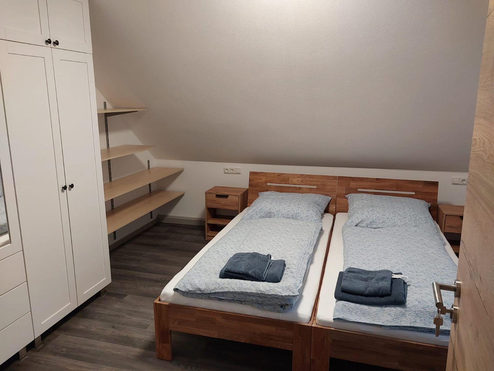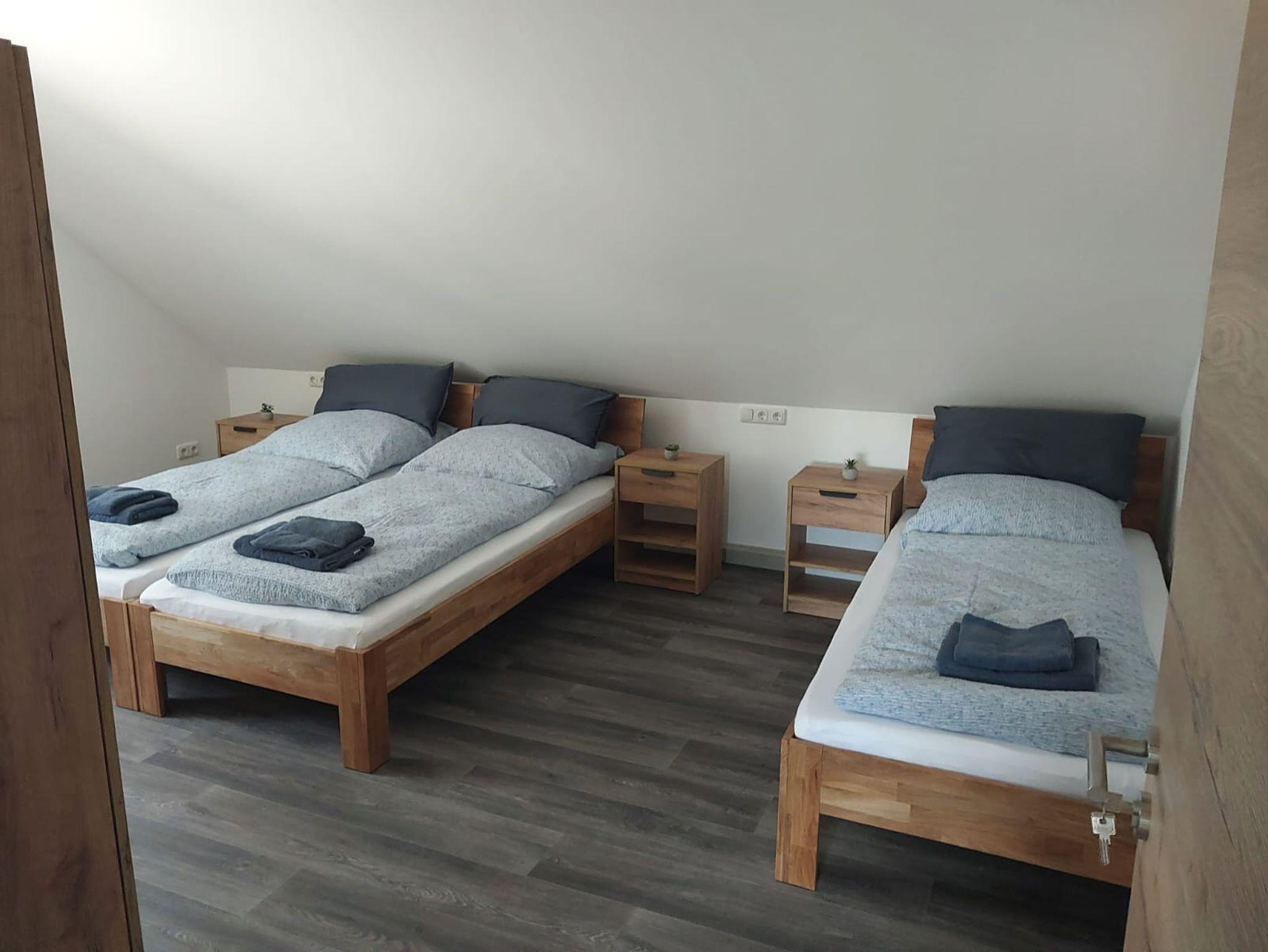 Die Ferienwohnung verfügt über drei gemütliche Schlafzimmer, die für maximalen Komfort sorgen. Eines der Schlafzimmer ist mit drei bequemen Betten ausgestattet, ideal für Kinder oder Freunde, während die beiden anderen Schlafzimmer jeweils mit zwei Betten ausgestattet sind. Jedes Zimmer ist mit einem Fernseher ausgestattet, sodass Sie nach einem erlebnisreichen Tag entspannen und Ihre Lieblingssendungen genießen können.