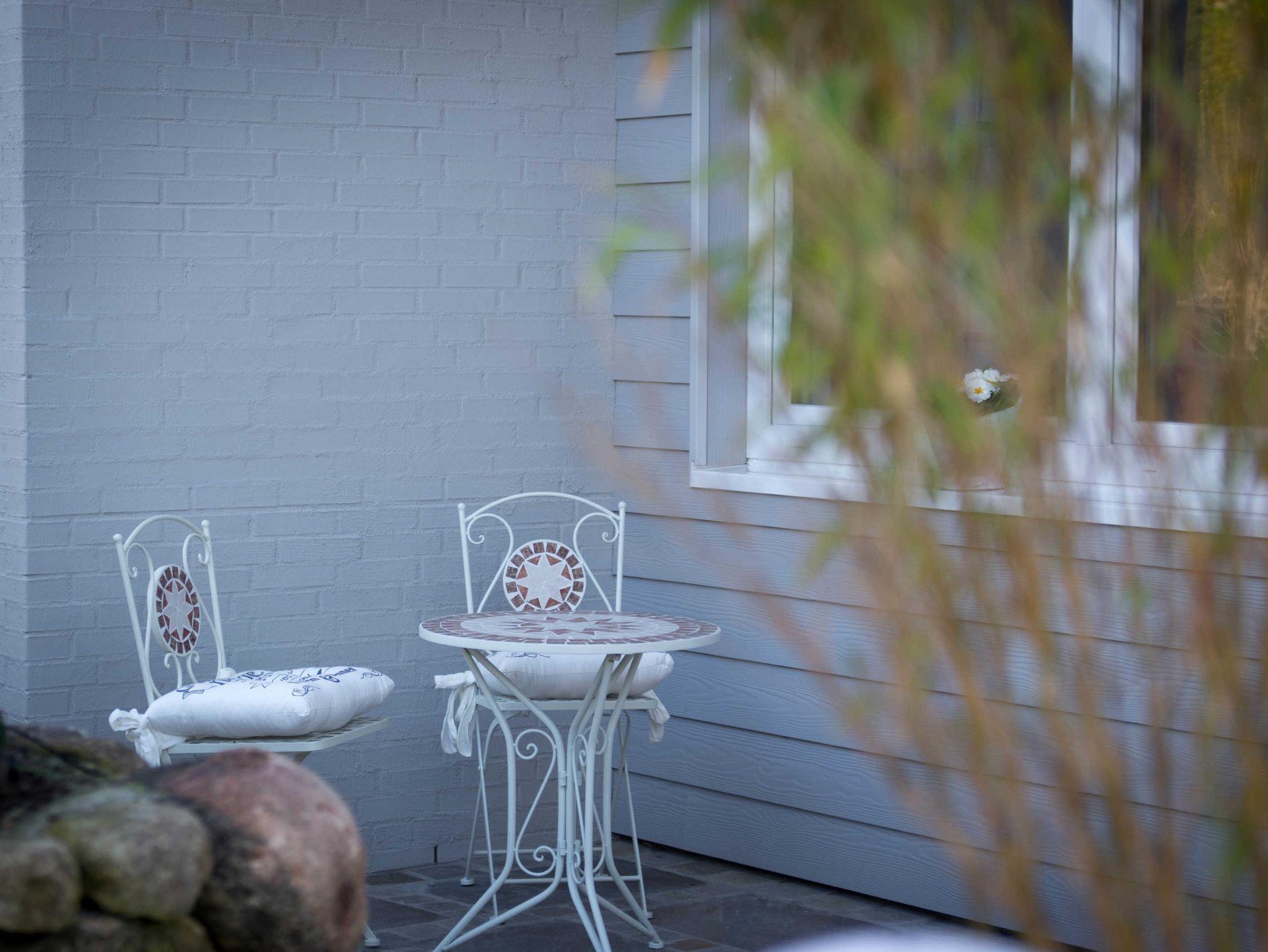 Morgens scheint die Sonne auf die eigene 30 m² große Terrasse. Hier lässt es sich prima frühstücken unter dem weiten Himmel Nordfrieslands.