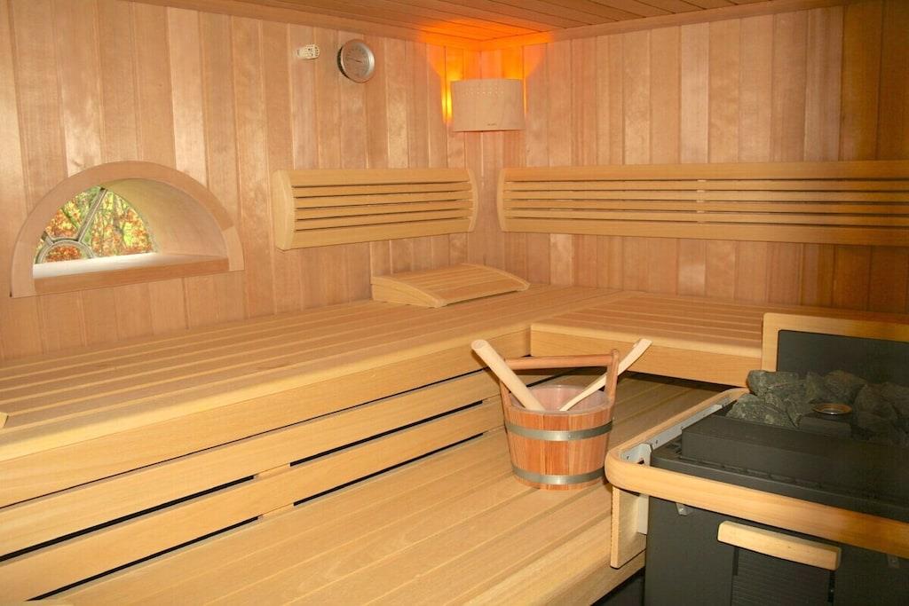 Fire Alarm, Hot Water, Internet Access ISDN, Vacuum Cleaner, hallway(Wardrobe Coatrack), hallway(Armchair), hall(Mirror, toilet, shower, washbasin, heating), Living/diningroom(Mixer, Sofa, TV, dining table, fireplace, Blu-ray player, hob, electric kettle, toaster, coffee machine, microwave, dishwasher, freezer, Food processor), bedroom(Wardrobe, double bed), bedroom(Wardrobe, double bed), Children's bedroom(single bed, single bed), bathroom(Mirror, toilet, shower, washbasin, heating), relaxation area(Relaxation Room), Internet access, Internet access, tumble dryer, washing machine, heating, terrace(garden furniture), terrace(garden furniture), garden, parking, ironing board, iron, lounge set(Relaxation Room, sauna)