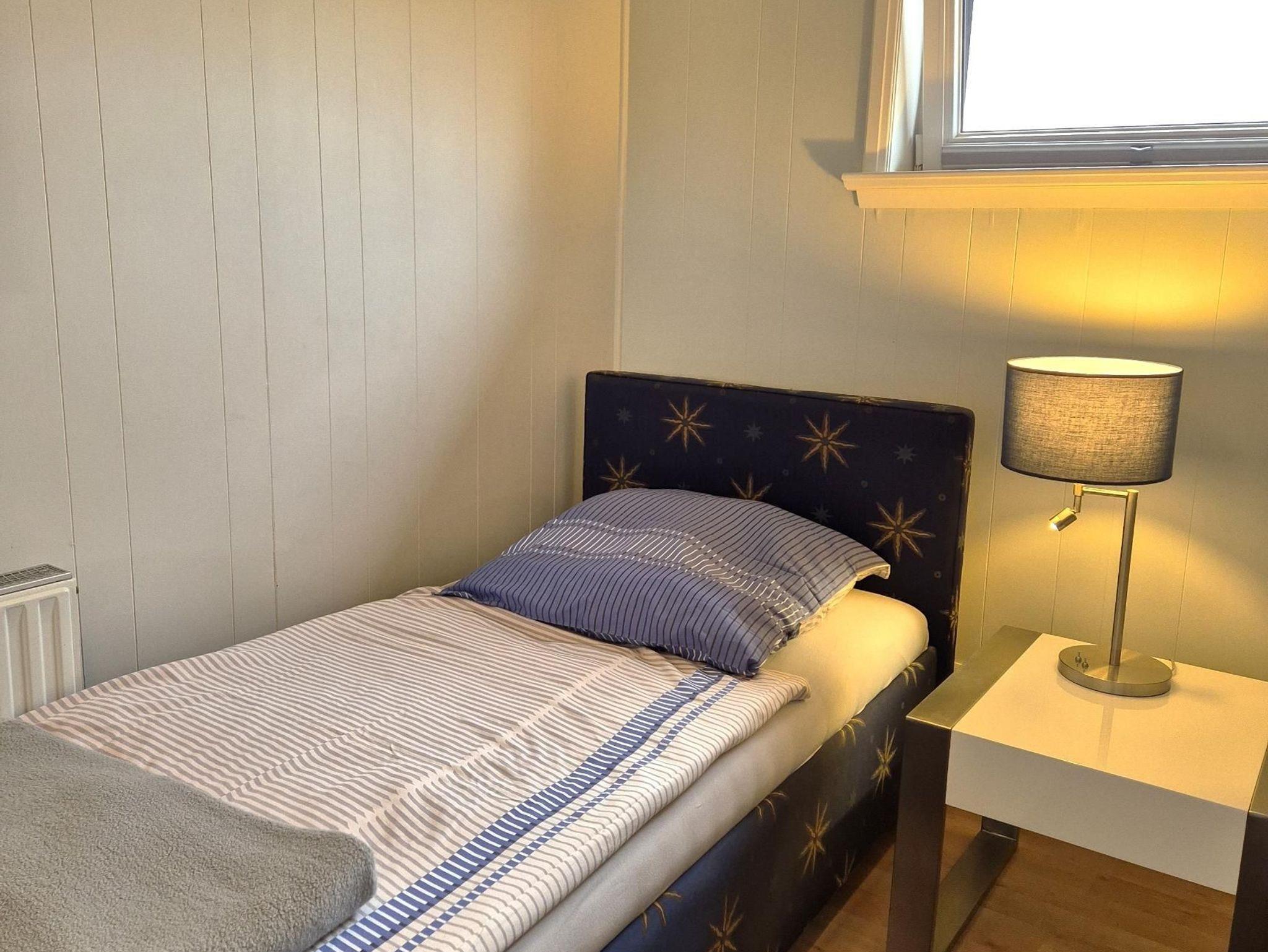 Raumaufteilung: 1 Schlafraum (1 Doppelbett), 1 Schlafraum (1 Einzelbett), 1 Wohnraum, 1 Küchenzeile, 1 Badezimmer mit Dusche.
