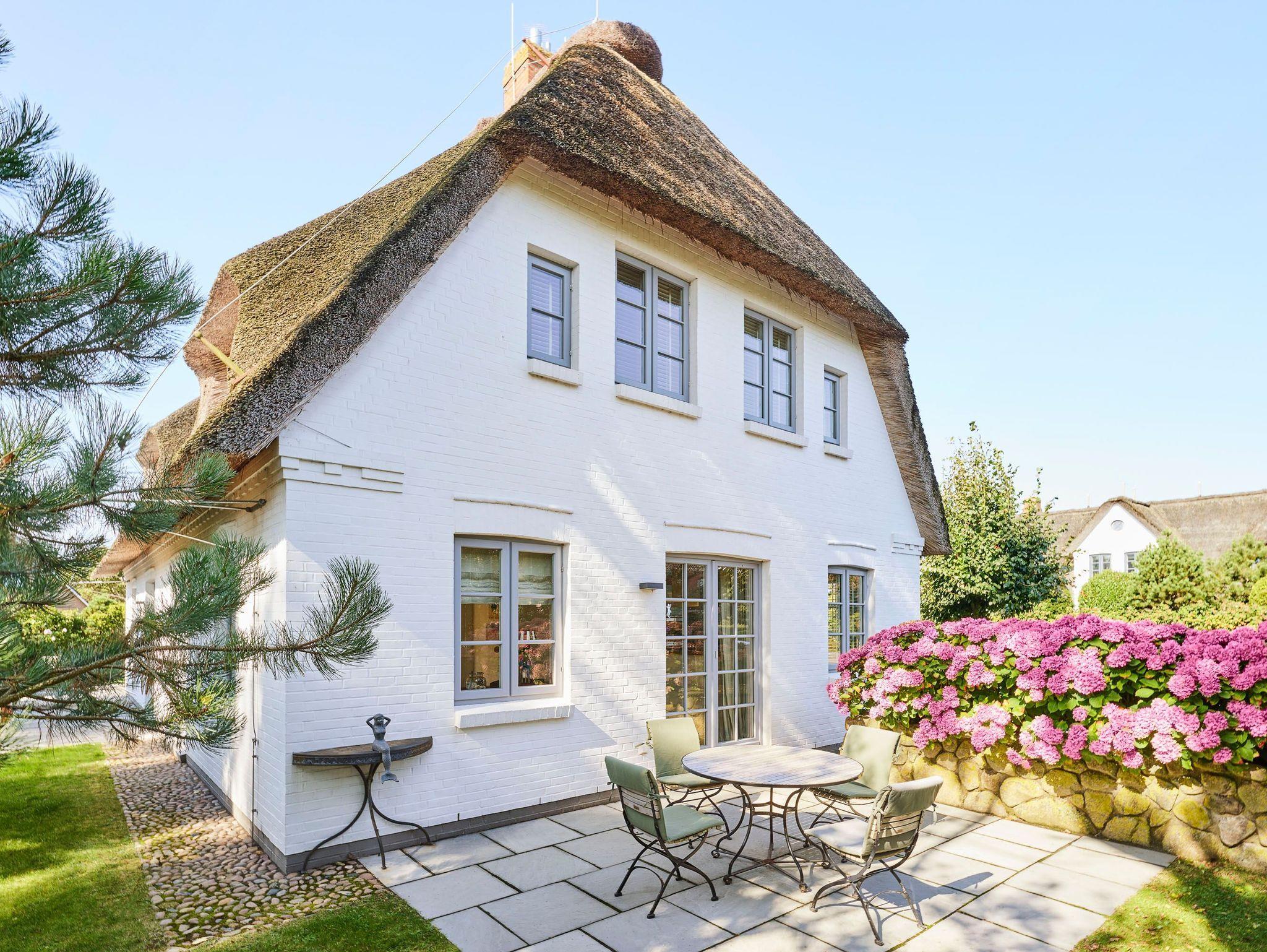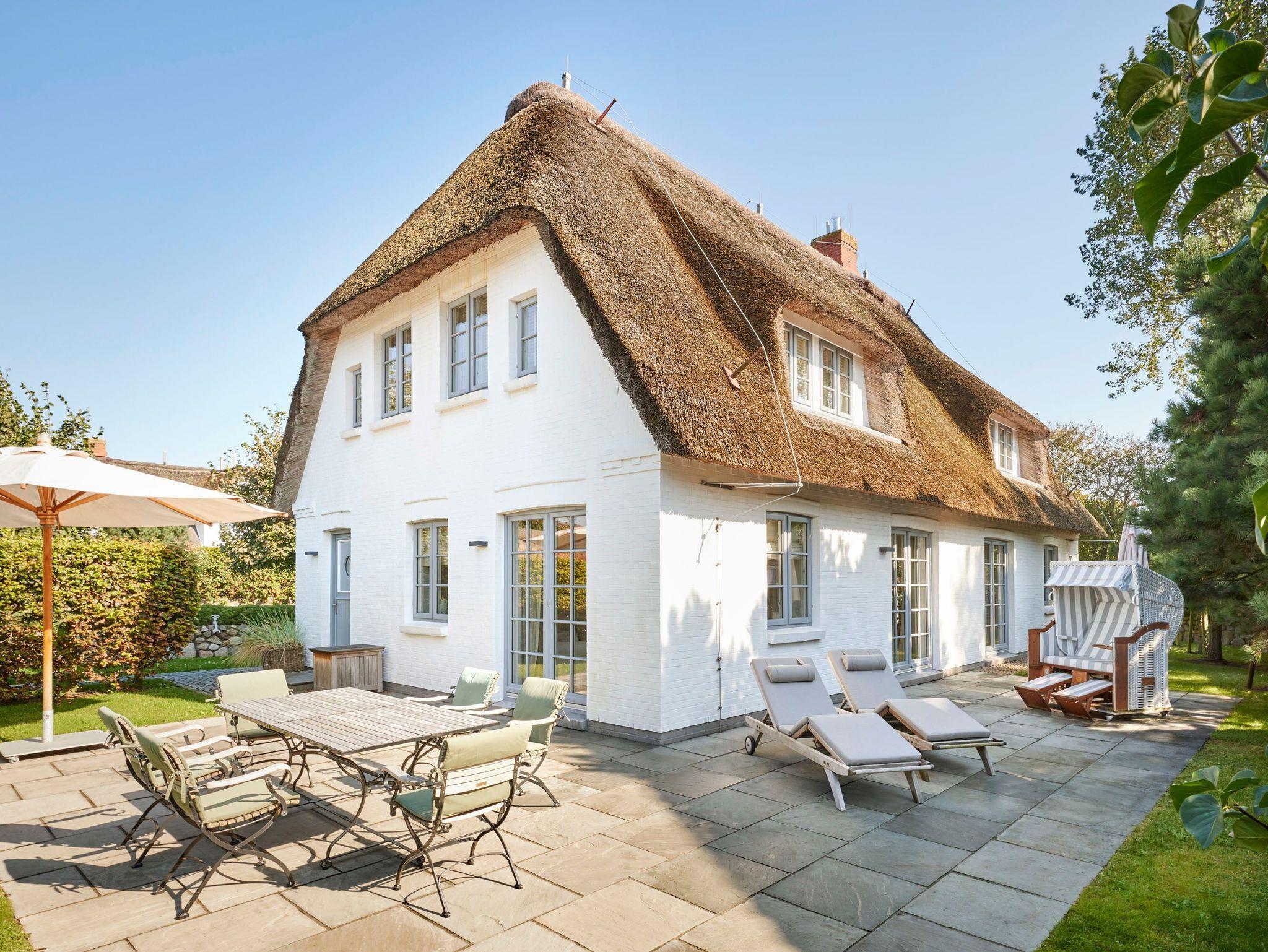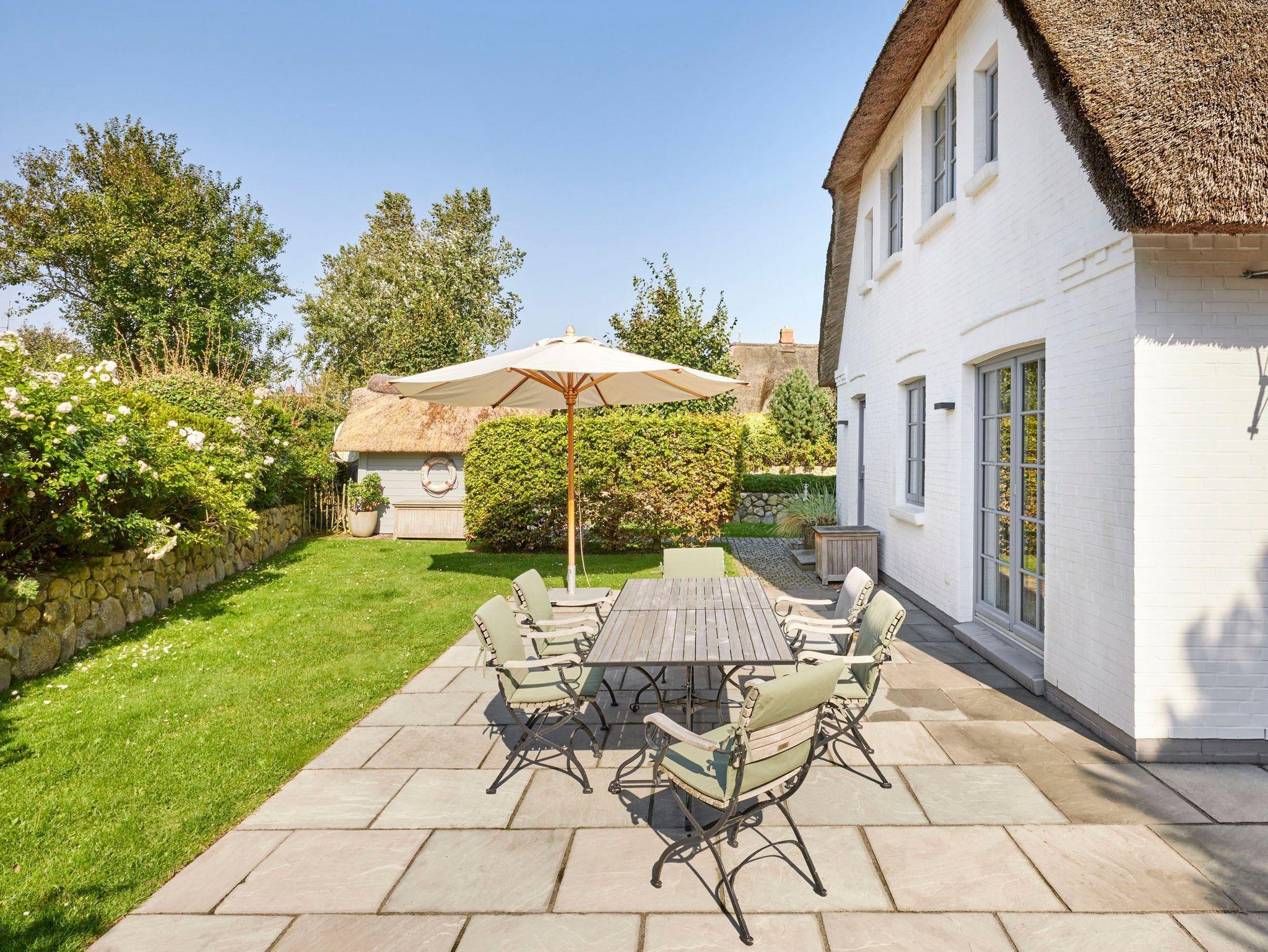 Wohnen Sie in diesem exklusiven Einzelhaus unter Reet im wunderschönen Friesendorf Nieblum. Hier finden Sie alte Kapitänshäuser, bunte Bauerngärten, Baumalleen und reetgedeckte Friesenhäuser - der perfekte Ausgangspunkt für einen erholsamen Urlaub. Das Haus ist sehr hochwertig ausgestattet und lässt keine Wünsche offen. Ein großzügiger Wohnraum mit Kachelofen, daran angrenzend der Essbereich für 6 Personen und die offene Küche mit allem, was das Kochherz begehrt, machen das Erdgeschoss zum Blickfang. Im Obergeschoss befinden sich drei geräumige Schlafräume und zwei Badtempel. Auf der ca. 95qm großen Terrasse und im schön angelegtem Garten werden Sie erholsame Urlaubstage verbringen.