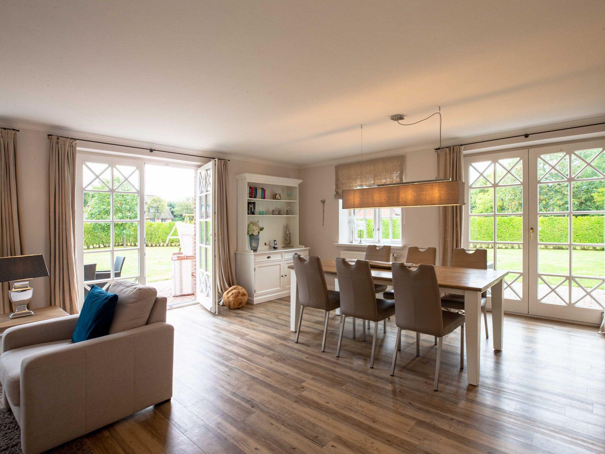 Landhaus Nieblum 2, Drunkenmanns Stieg 17, Nieblum. .Herzlich Willkommen in unserem Domizil in Nieblum. Dieses exklusive Doppelhaus, in einer absolut ruhigen Straße im Herzen von Nieblum gelegen, wird Sie begeistern. Jede Doppelhaushälfte wurde sehr hochwertig und geschmackvoll ausgestattet. Wohnen Sie unter Reet im schönsten Dorf der Insel Föhr und genießen Sie den großen Garten oder die großzügige und moderne Sauna mit Ruheraum. Wir freuen uns, Sie als unsere Gäste begrüßen zu dürfen.