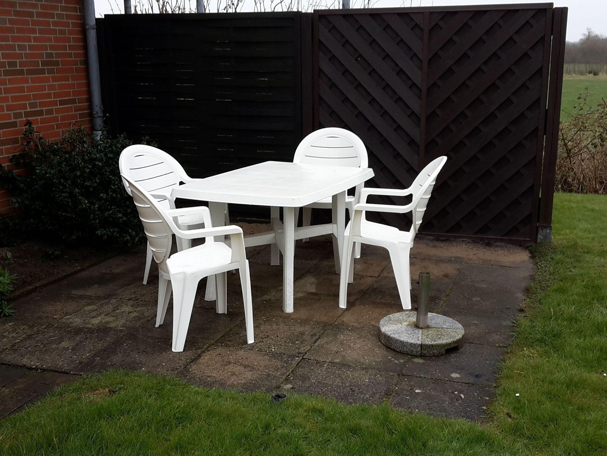 Außenbereich: Terrasse mit Gartenmöbeln.