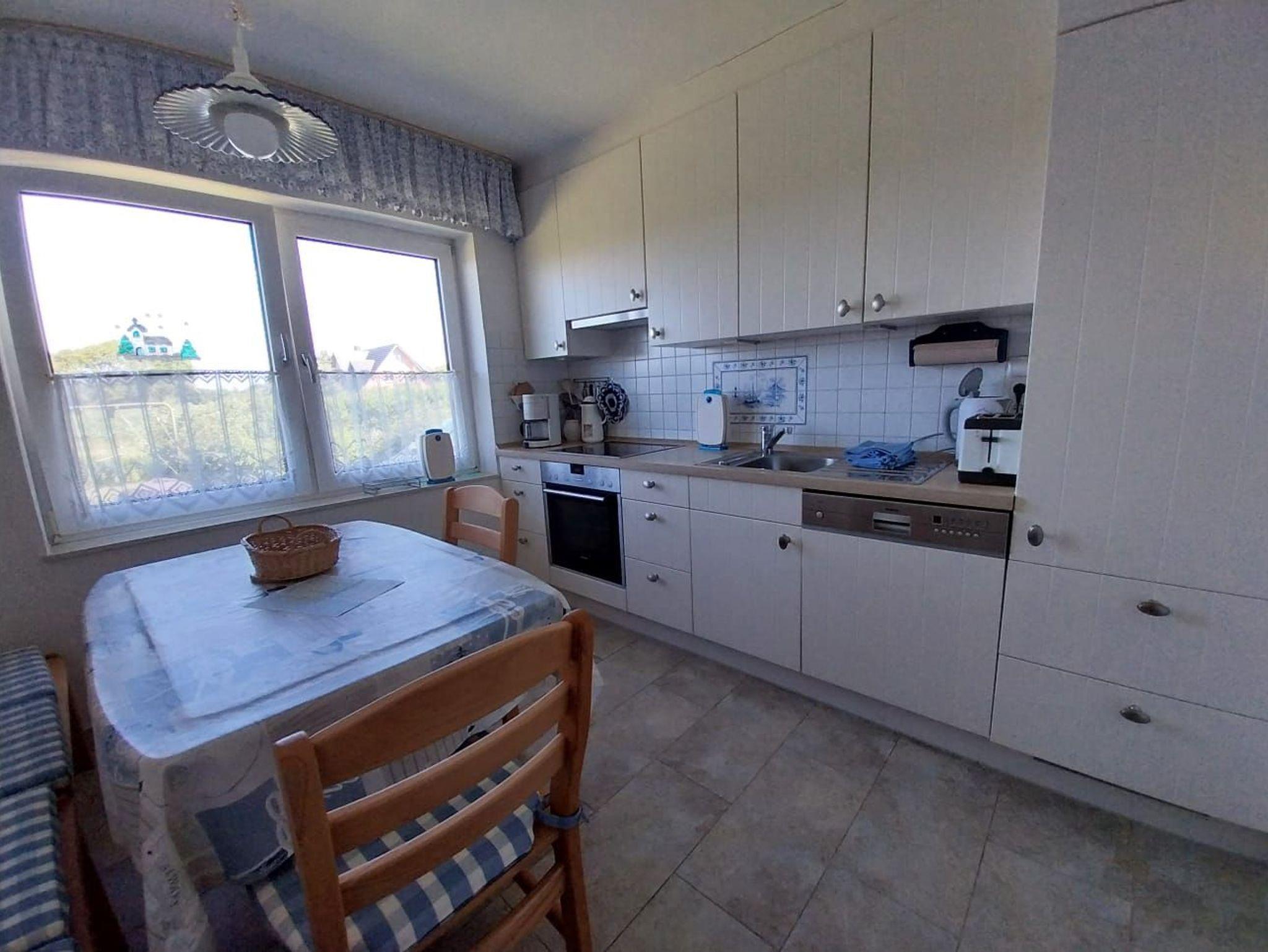 Die Küche ist mit Backofen mit 4-Zonen Ceranfeld ausgestattet.