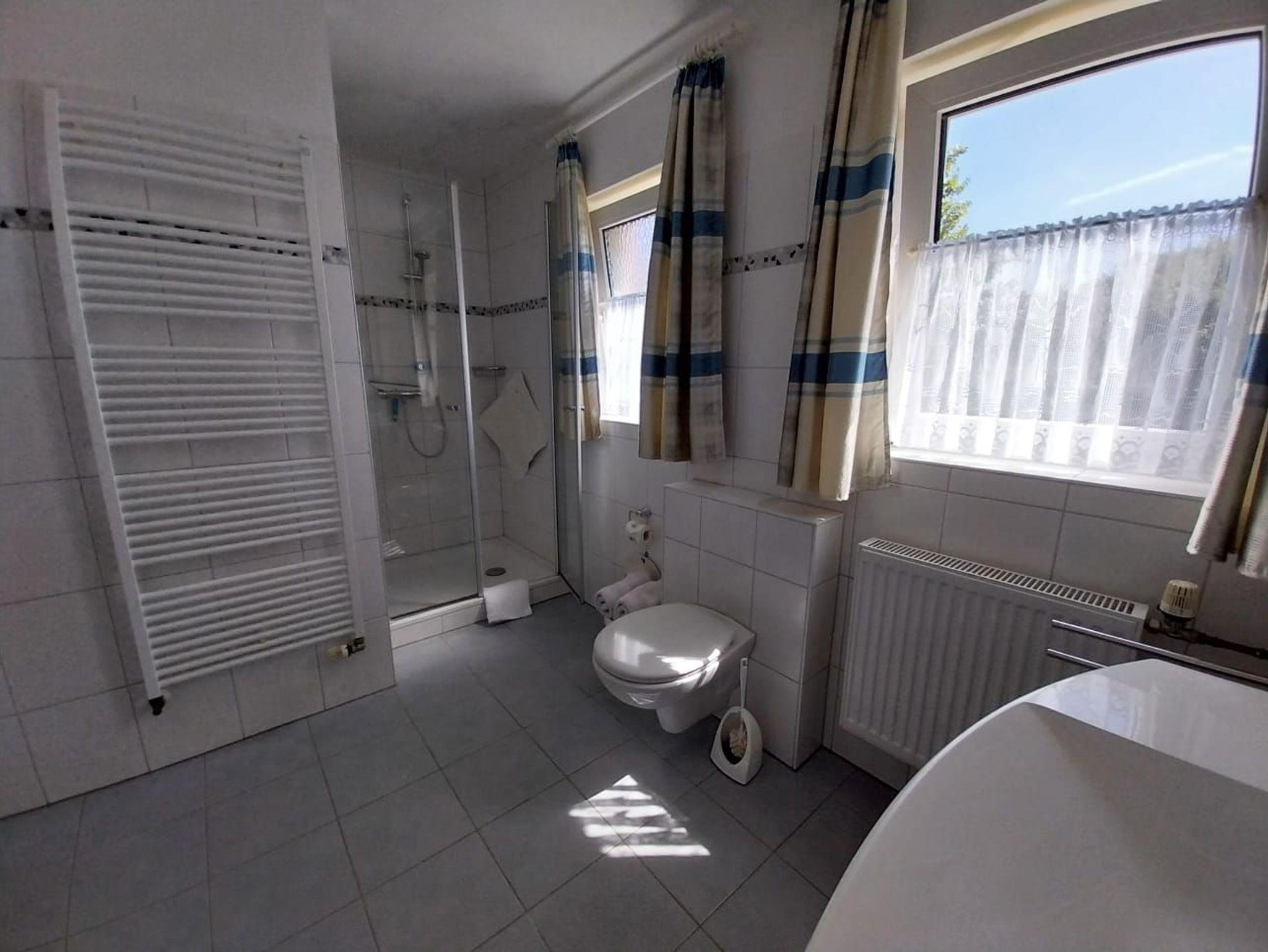 2 Badezimmer mit Dusche und WC.