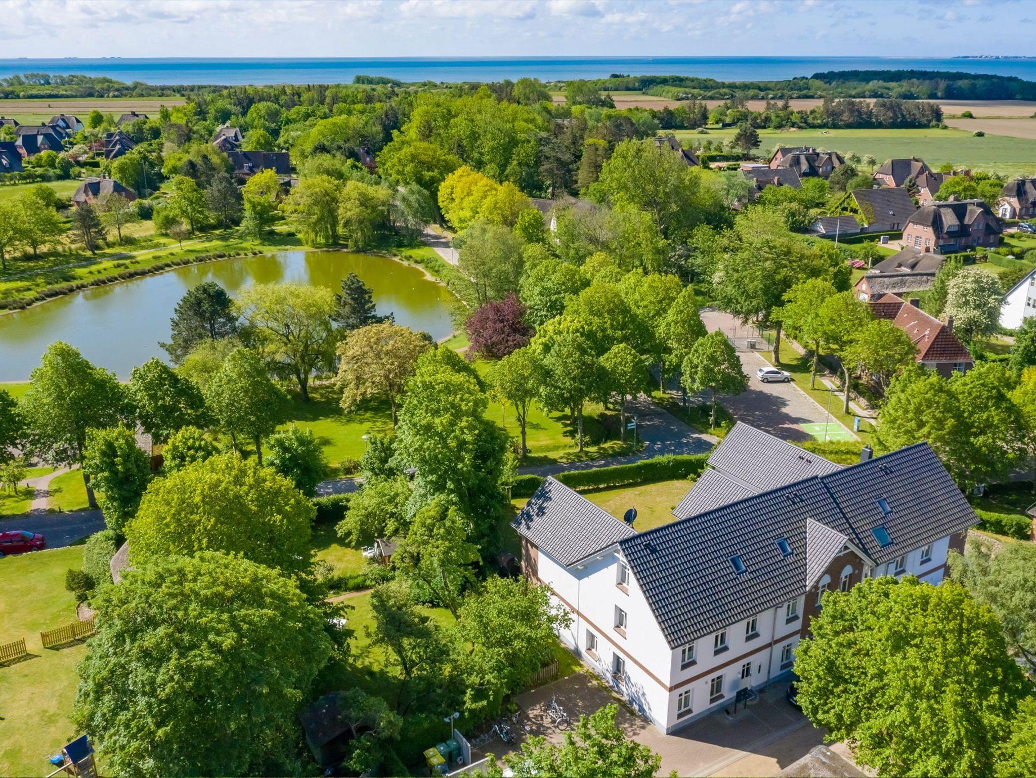 Das Objekt Villa de Meere - mit 8 individuellen und exklusiven Wohnungen - befindet sich in einer Seitenstraße in der Nähe des Nieblumer Ortskerns am Dorfteich de Meere. Das gesamte Ortsbild des wohl schönsten Inseldorfes ist geprägt von reetgedeckten, alten Kapitänshäusern, wunderschönen Bauerngärten und dem Friesendom St. Johannis. Der Nieblumer Strand liegt nicht weit vom Ortskern entfernt. Cafés, Restaurants, ein Bäcker und Einkaufsmöglichkeiten für den täglichen Bedarf sind im Ort vorhanden und bequem zu Fuß zu erreichen.