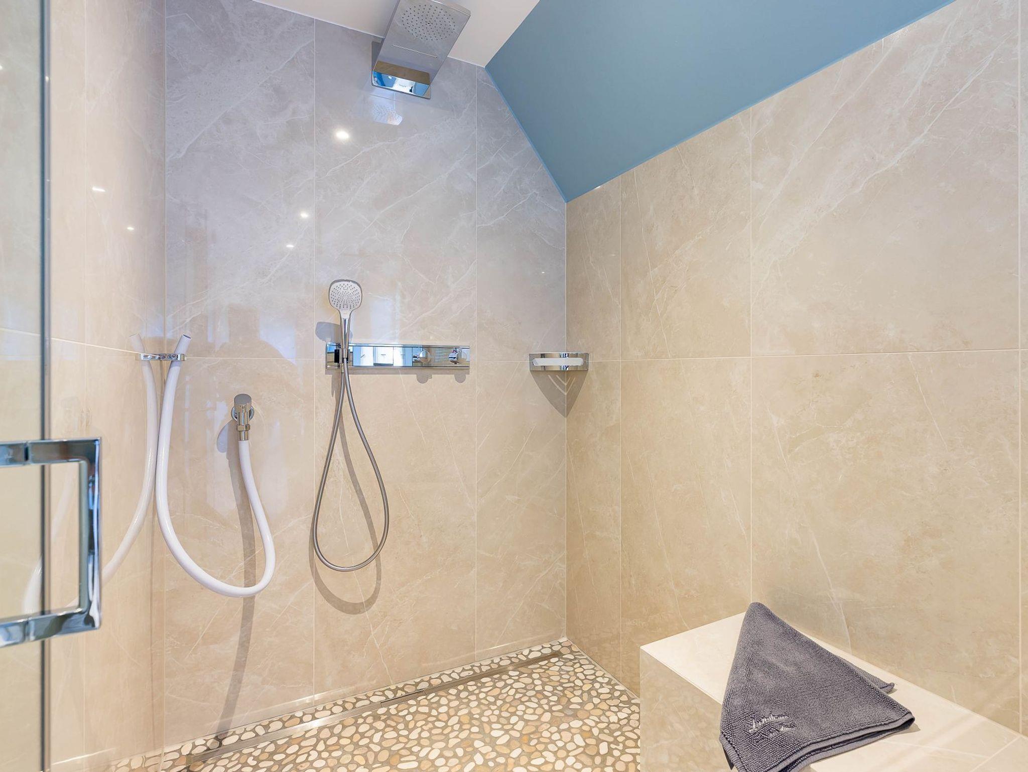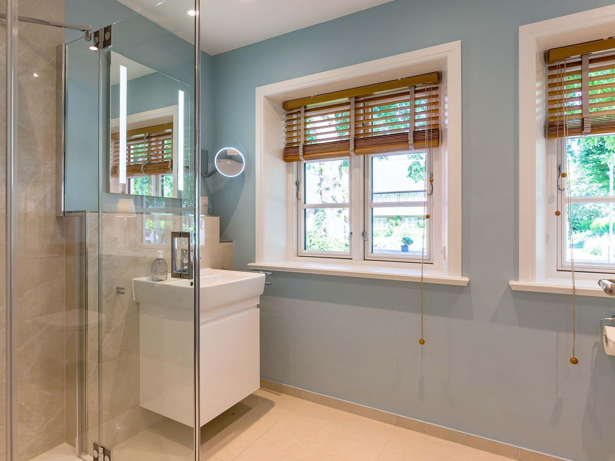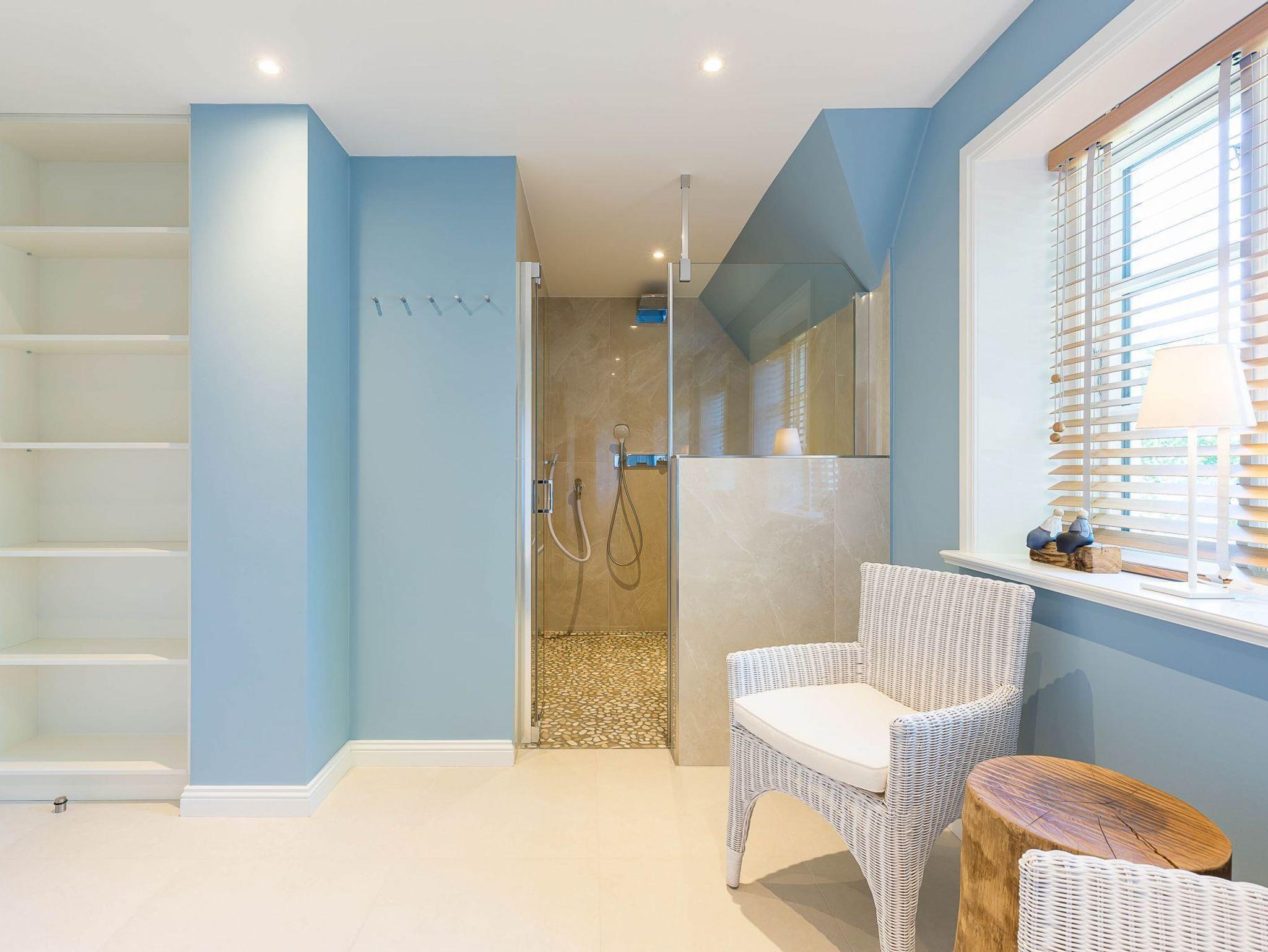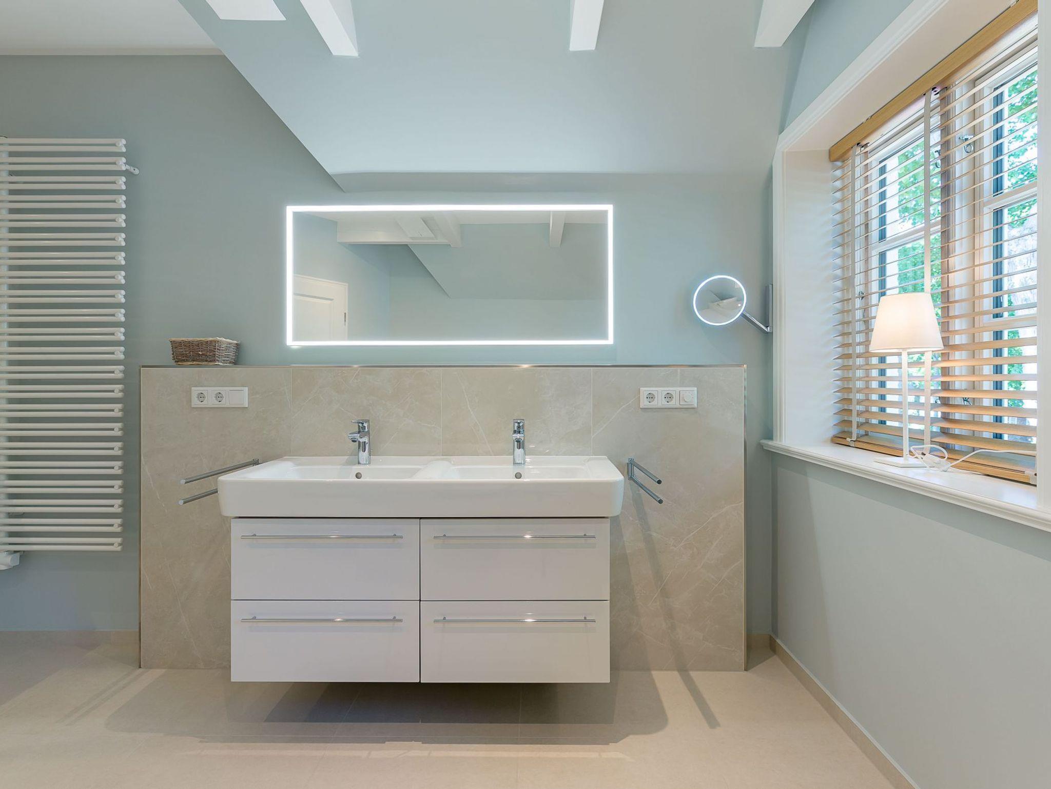 Im Obergeschoss finden Sie zwei weitere großzügige Schlafräume mit offener Kehlbalkendecke und en suite Bad. Beide Schlafräume sind ebenfalls jeweils mit einem TV und auch einem Schreibtisch ausgestattet. Ein Arbeitszimmer mit Alkoven ist einem Schlafzimmer vorgelagert. Die ebenfalls im Obergeschoss befindliche Sauna mit großer Walk-in-Dusche und Kneippgarnitur macht Ihren Wellnesstag zum Erlebnis.