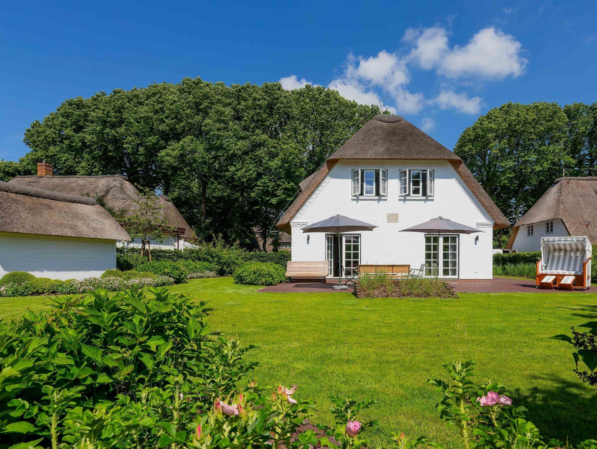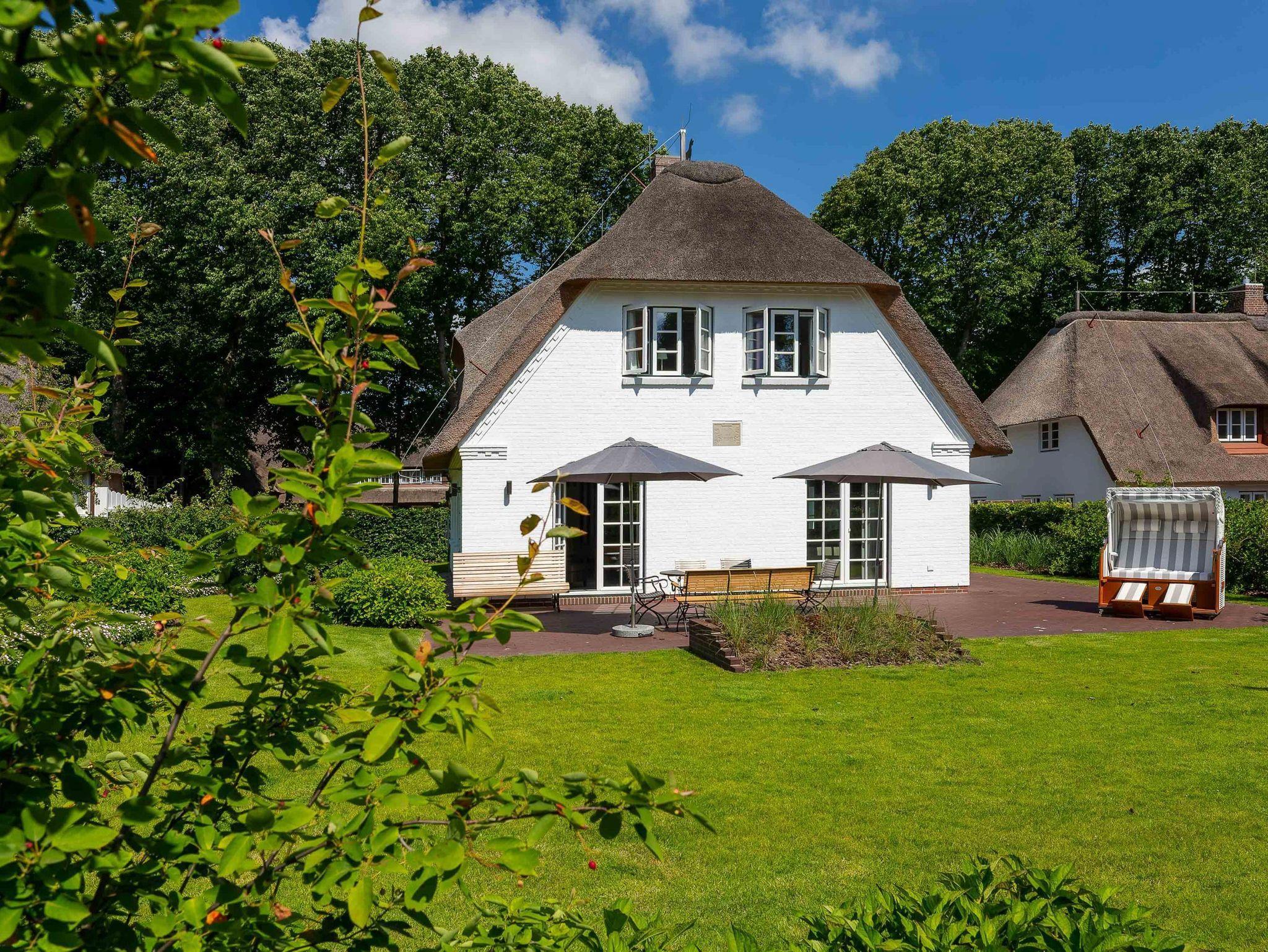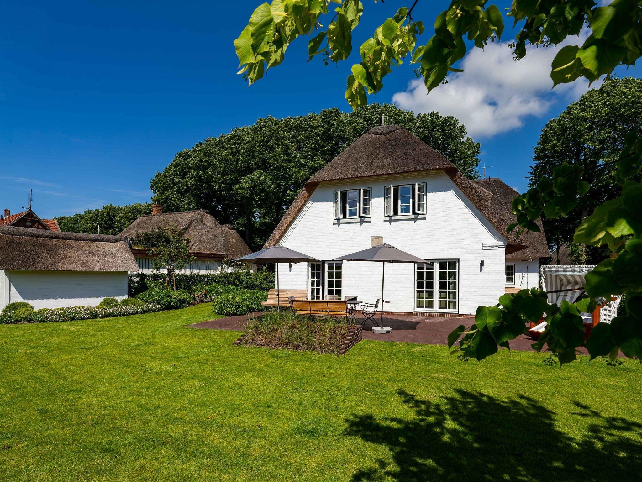 Das Haus ist ein echtes Schmuckstück und bietet abgewandt von der Straße im Südwesten einen großen eingefriedeten Garten mit umlaufender Frühstücks- und Sonnenterasse. Zum Entspannen stehen dort Bänke und andere Sitzgelegenheiten mit einem großen Gartentisch zur Verfügung. Der Strandkorb lädt zum herrlichen Sonnenbaden ein. Eine automatische Bewässerung, die nachts angesteuert wird, lässt die Pflanzen gedeihen.