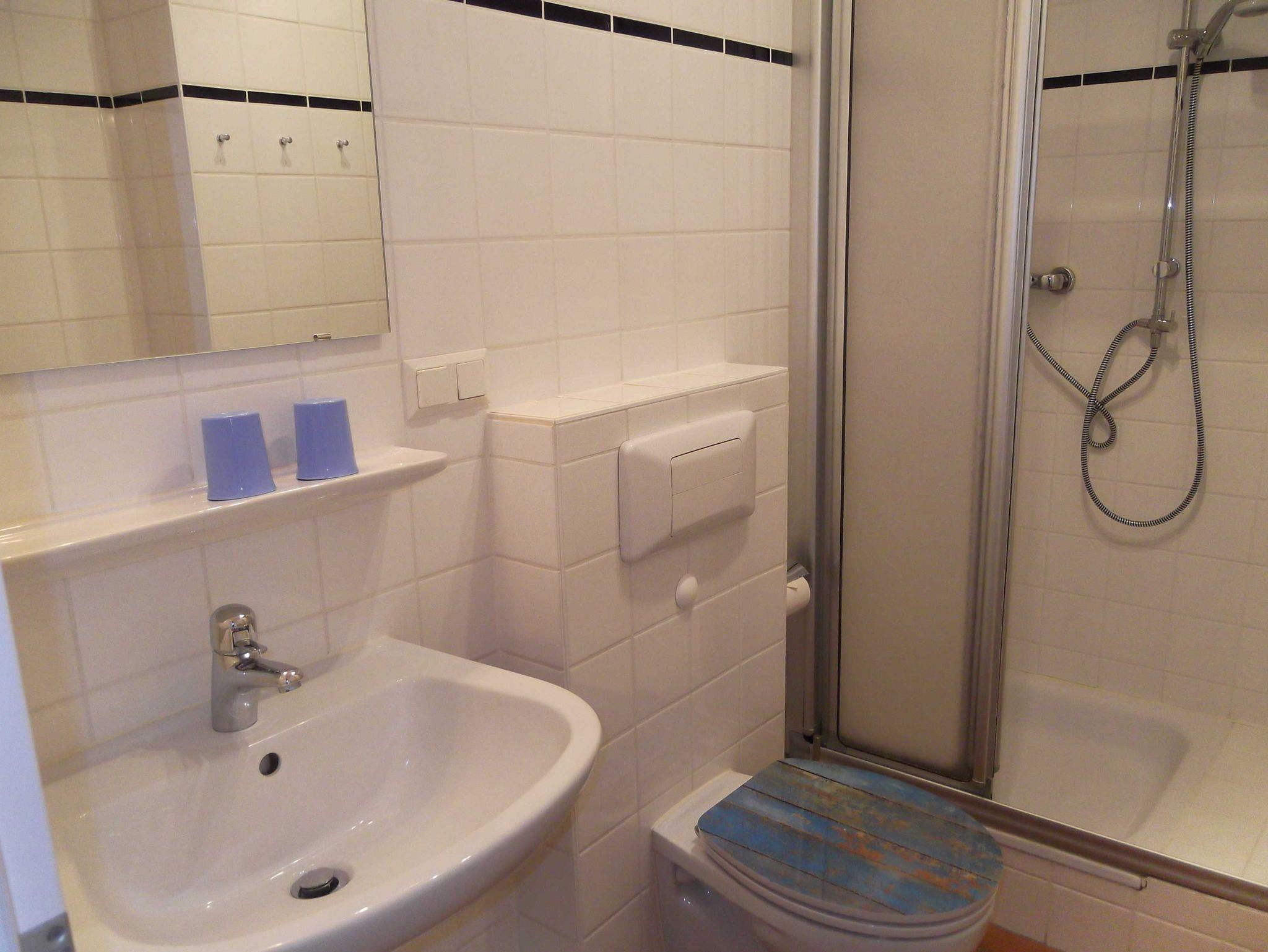 Die 40 qm große Ferienwohnung im Erdgeschoss mit einer schönen südwestlich gelegenen Terasse verfügt über ein separates Schlafzimmer, ein Duschbad und ein Wohnzimmer mit Küchezeile. Zur Wohnung gehört eine Gemeinschaftssauna mit Ruheraum und ein PKW-Stellplatz. Waschmaschine und Trockner stehen gegen eine Gebühr zur Nutzung bereit.