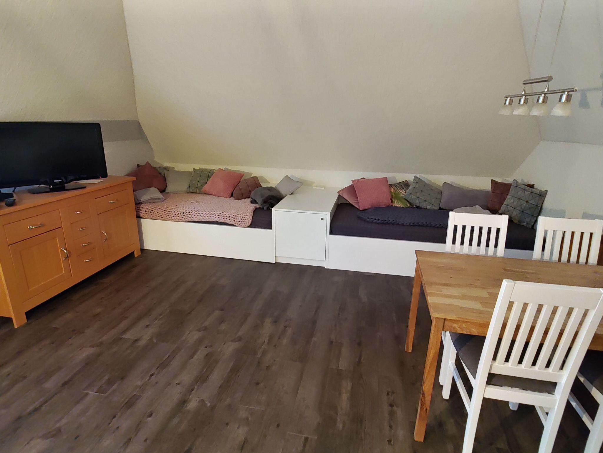 1 Schlafraum, 1 komb. Wohn-/Schlafraum mit Küchenzeile und Esstisch, 1 Badezimmer mit Dusche.